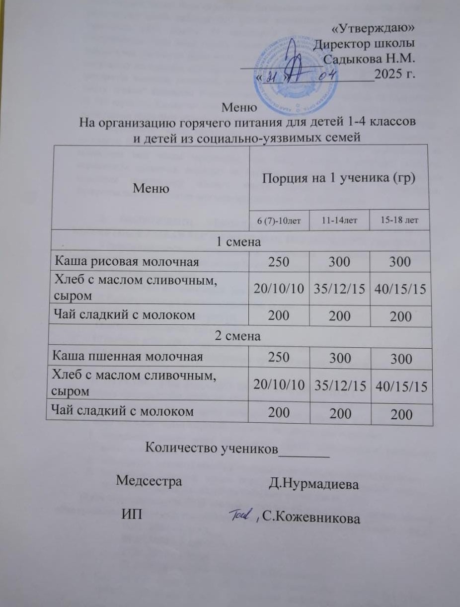 18 апрель 2025 Ас мәзірі