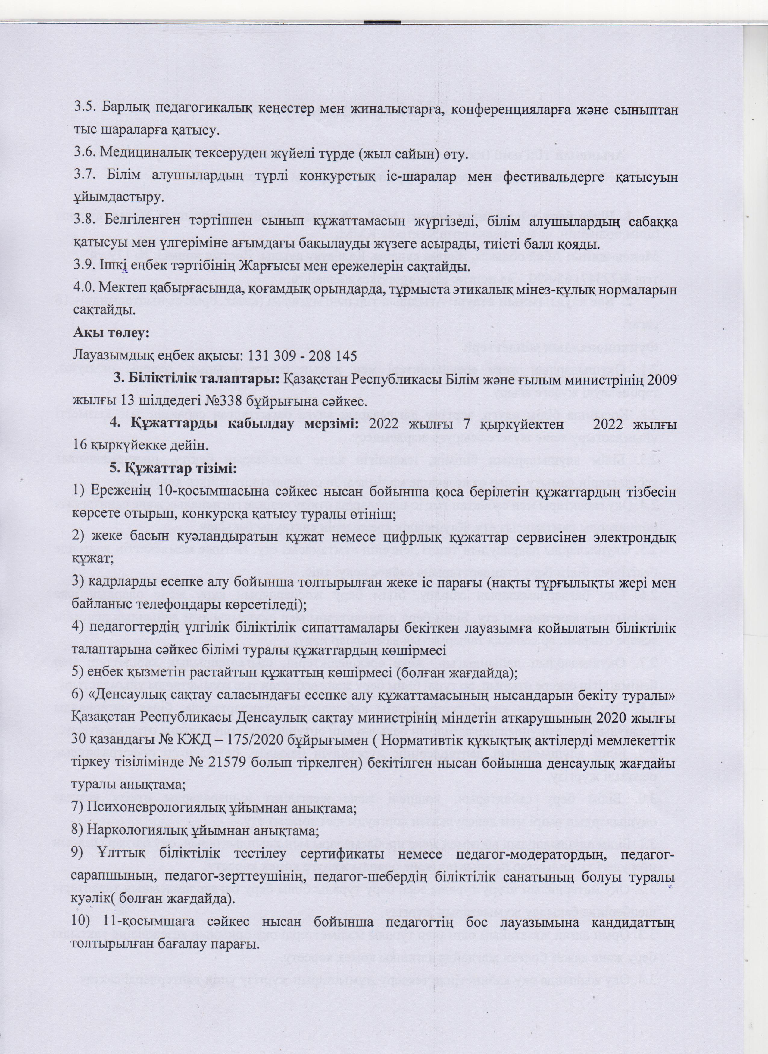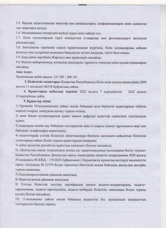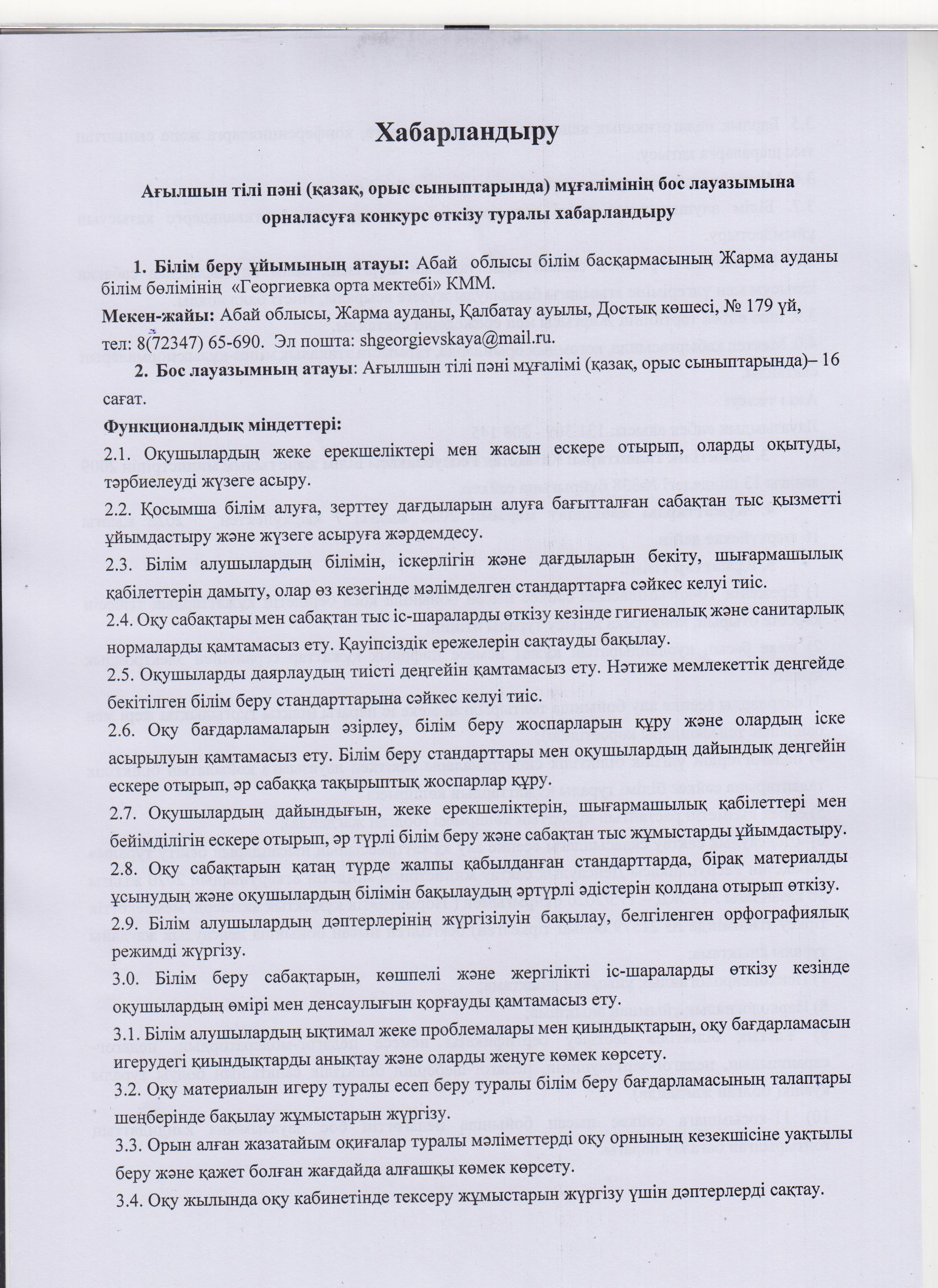 Бос лауазымға хабарландыру » «Георгиевка орта мектебі» КММ