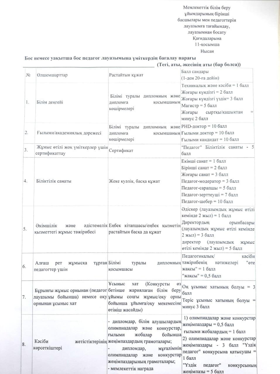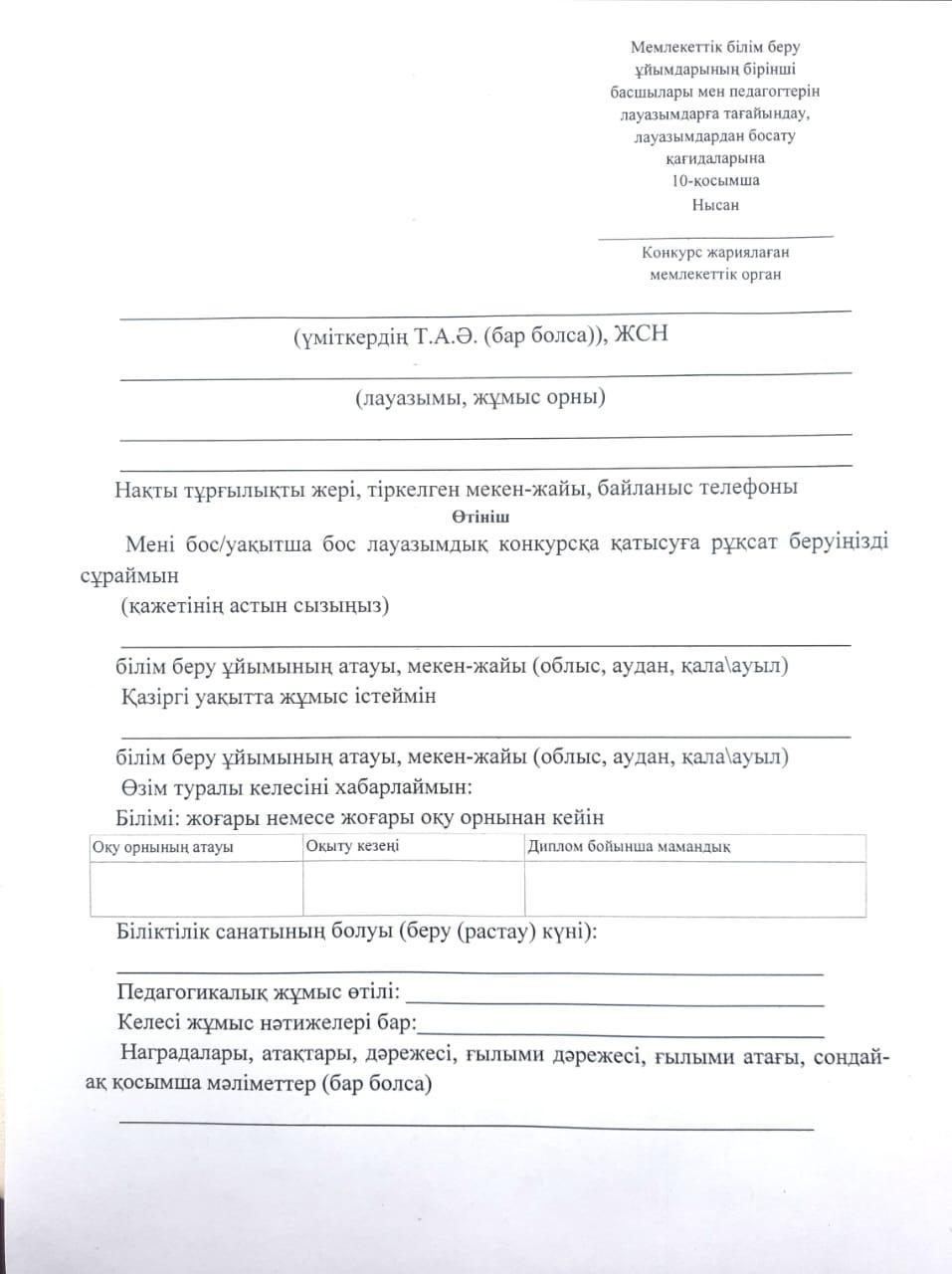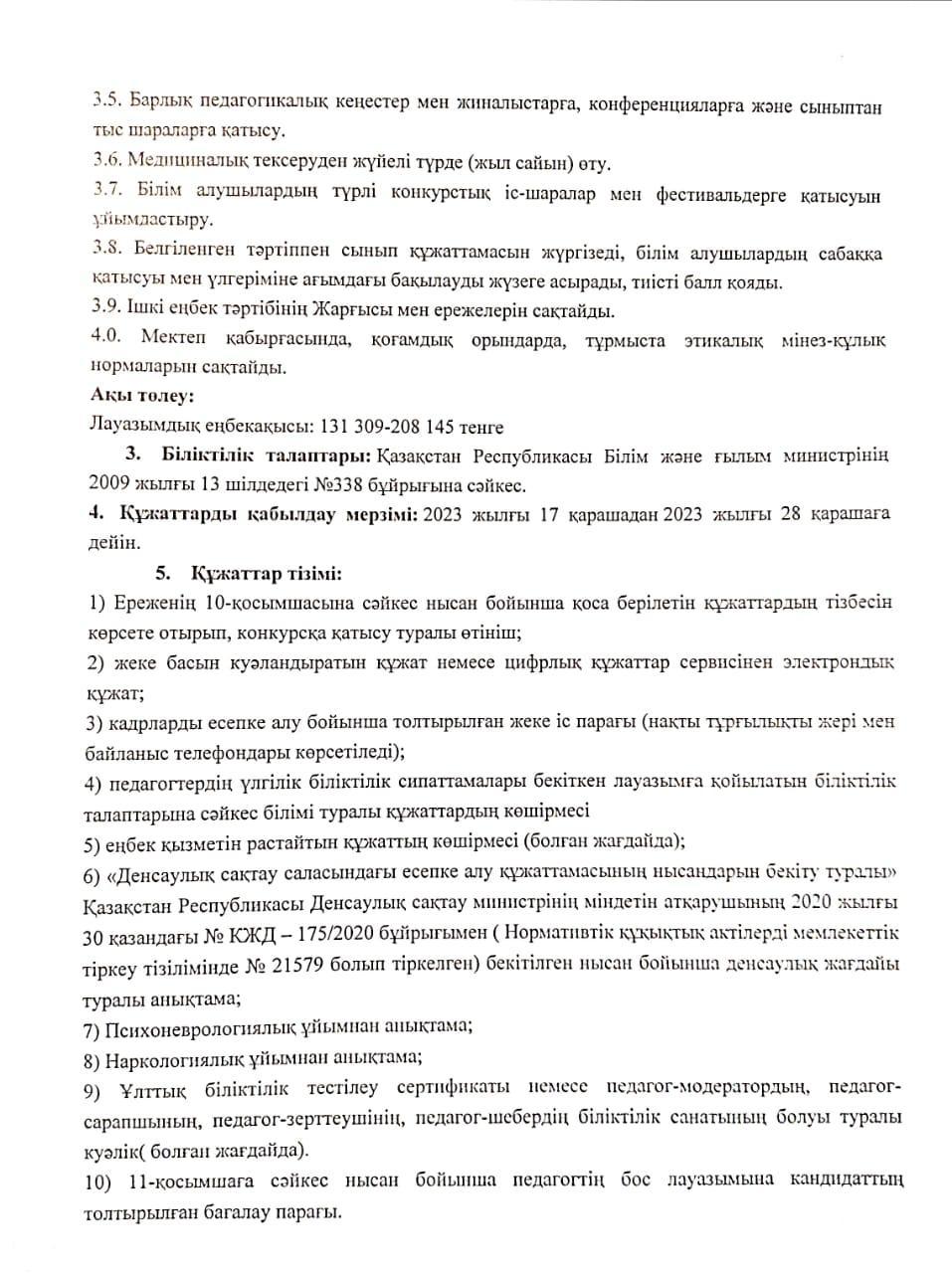 Математика пәні мұғалімінің бос лауазымы бойынша конкурсқа хабарландыру