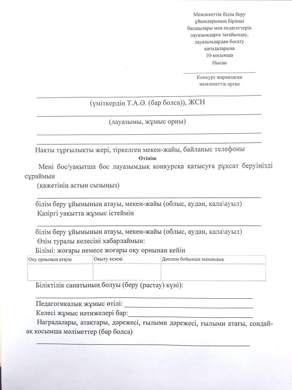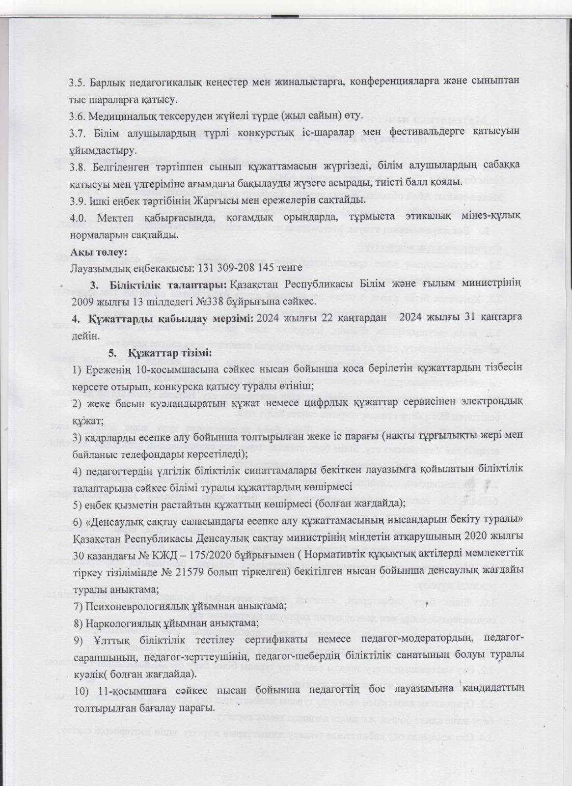 Математика пәні мұғалімі бос лауазымына конкурс өткізу туралы хабарландыру