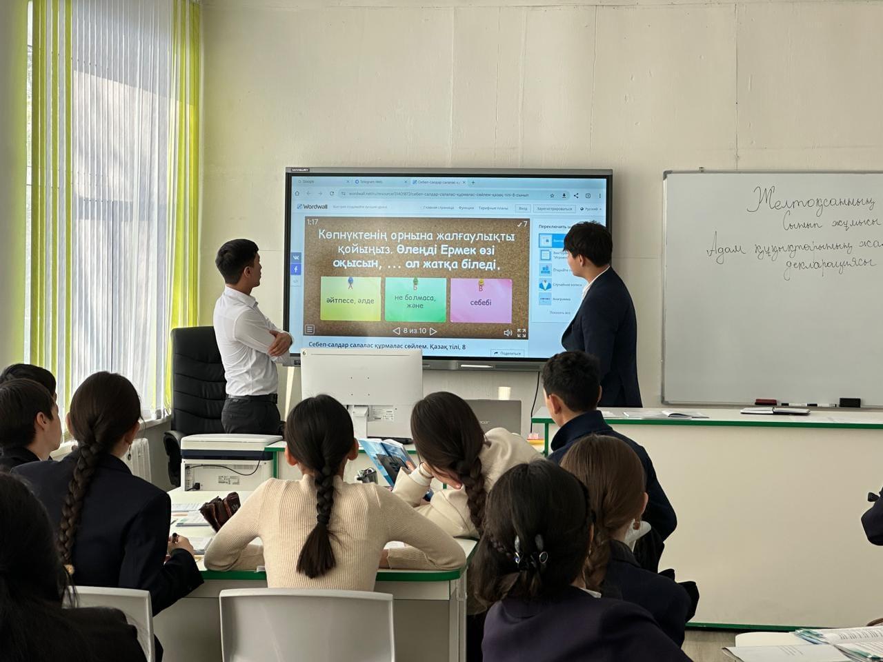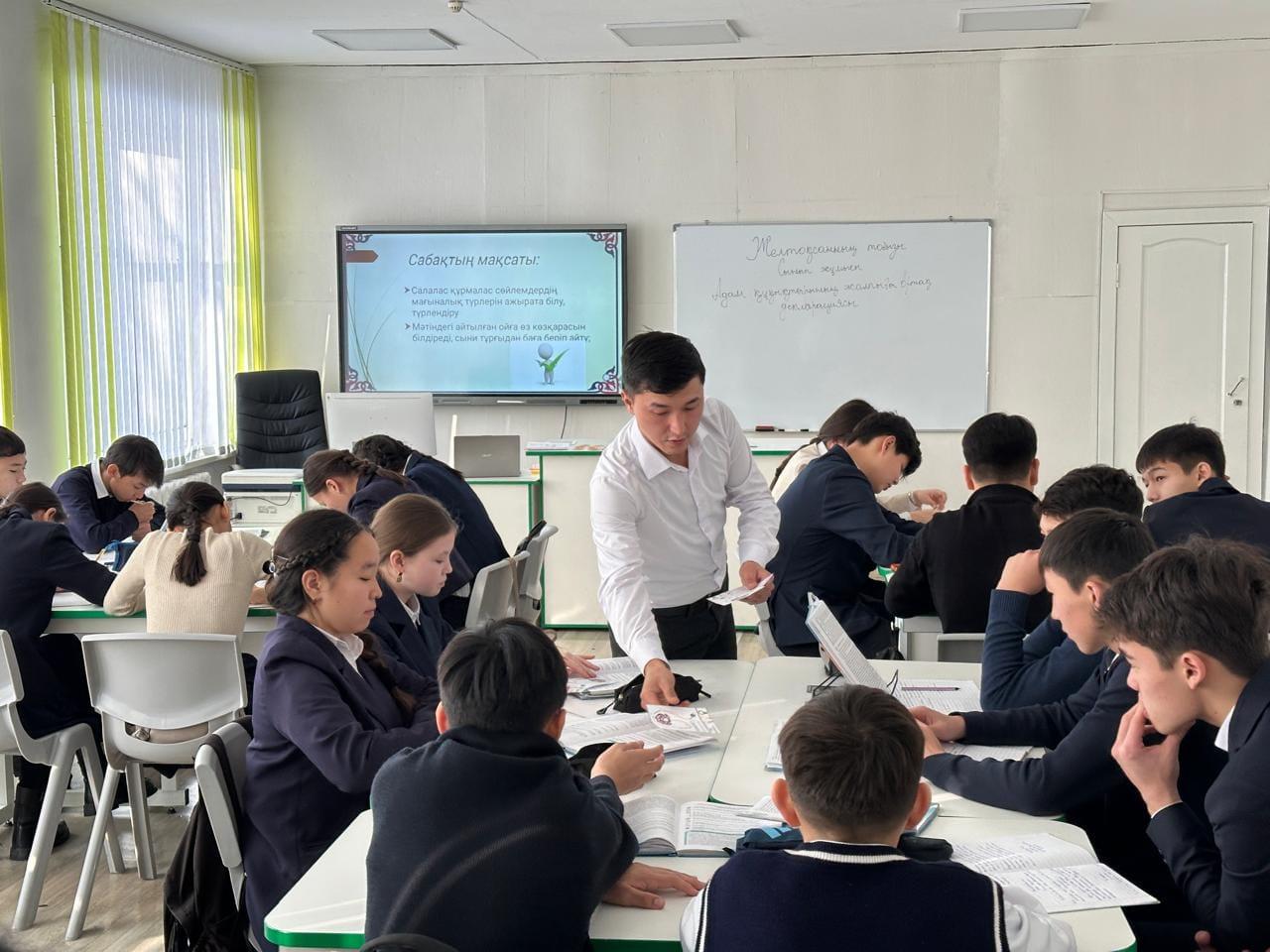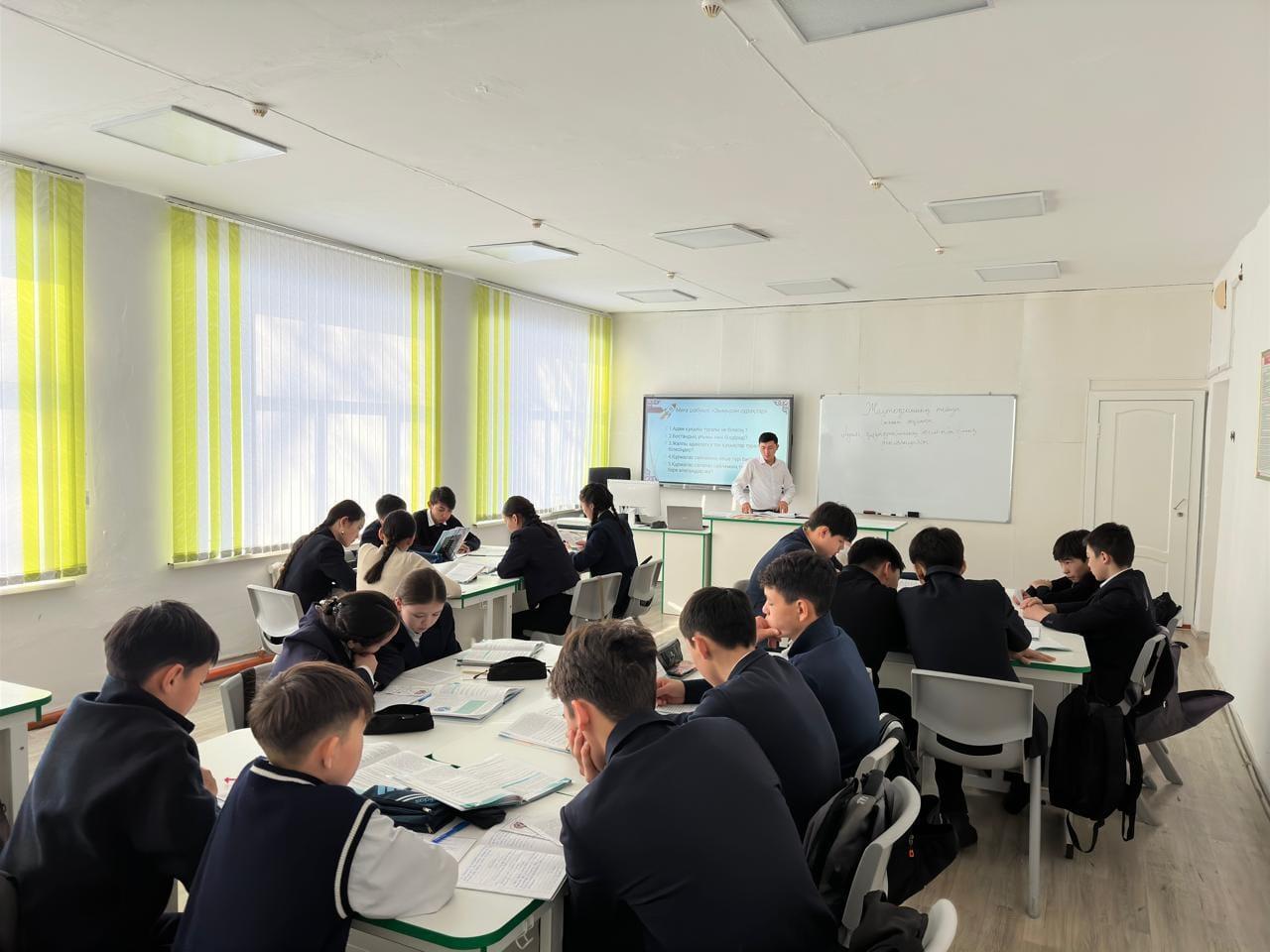 Апталық аясында қазақ тілі мен әдебиет пәні мұғалімі Қадылбеков Дильмұрат Еркінбекұлы 9 "В" сыныбында "Адам құқықтарының жалпыға ортақ декларациясы" тақырыбында ашық сабақ өткізді. Сабақ барысында оқушылар топтық жұмыстар жасап, бекіту тапсырмаларын орындады. Берілген тапсырмалар арқылы балалар жаңа тақырыпты толығымен меңгерді.
