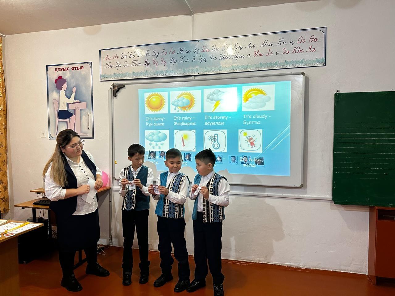 2024 жылдың 09 желтоқсан күні аттестациядан өтетін мұғалімдердің “Білімді ұрпақ-ертеңгі болашақ “ апталығы аясында Төлешова Айдана Қуатқызы 3 “ В” сынында ағылшын тілі пәнінен “ Weather and seasons ” тақырыбында ашық сабақ өткізді. Сабақтын мақсаты оқушылар жаңа сөздерді меңгеріп , қысқаша жауап бере алу дағдысын дамыту. Сабақ жақсы көңіл күймен басталып, оқушылар тақырып бойынша әртүрлі тапсырмалар орындады. Оқушылар сабаққа белсене қатысып, жаңа тақырыпты толық игерді.
