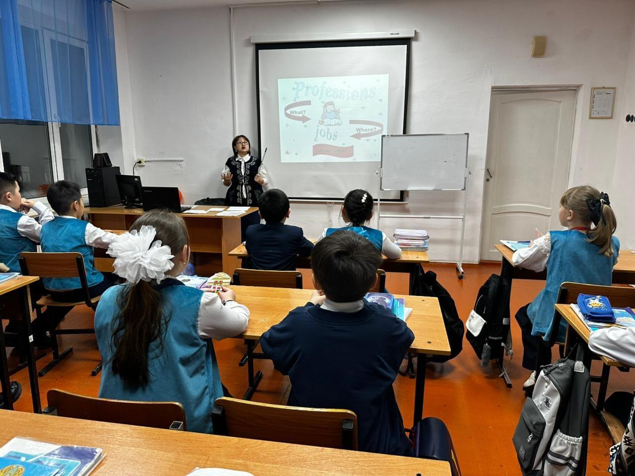 ағылшын тілі пәні мұғалімі Байгендирова Динара Каблашимовна 5 «А» сыныбында ағылшын тілі пәнінен «Professions» тақырыбында ашық сабақ өткізді.