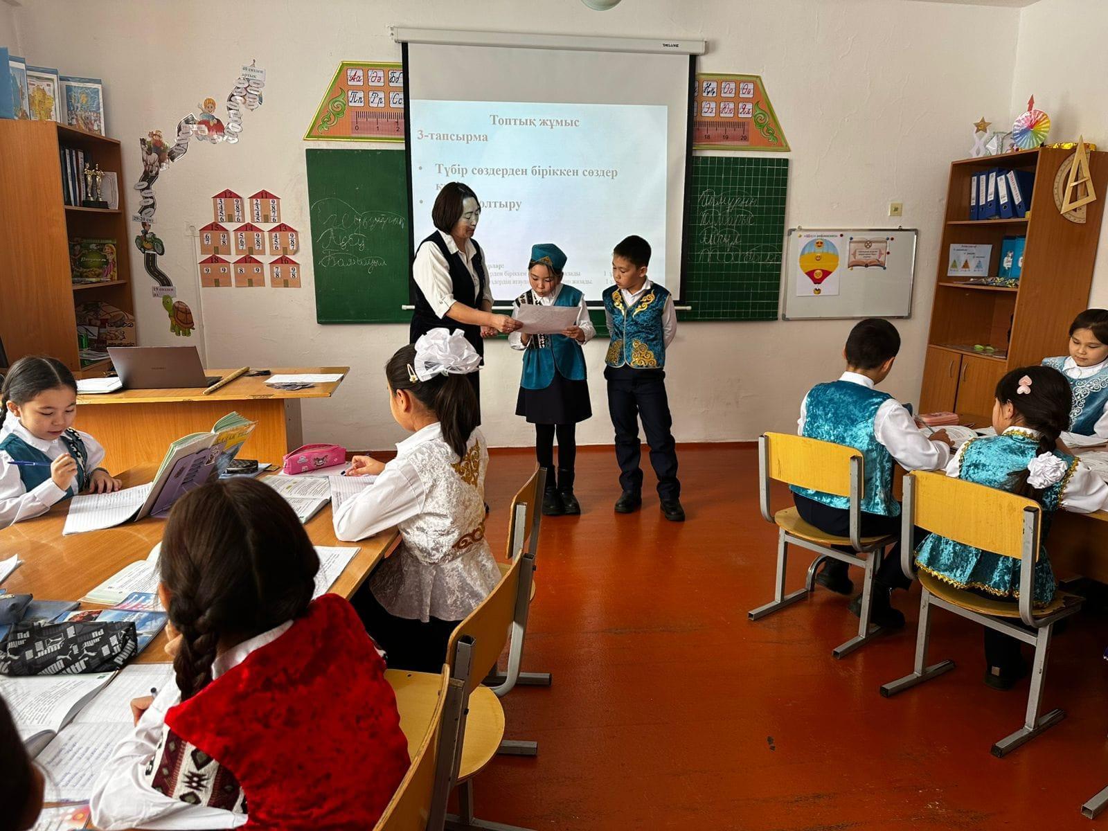 Бүгін, яғни 12 желтоқсан күні аттестациядан өтетін мұғалімдердің “Білімді ұрпақ-ертеңгі болашақ“ апталығы аясында бастауыш сынып мұғалімі Бейсембинова Жанар Зиратбековна 4 «Б» сынып оқушыларымен қазақ тілі пәнінен "Біріккен сөздер" тақырыбында ашық сабақ өткізді. Сабақ барысында оқушылар біріккен сөздердің жасалу жолын және тірек сөздер арқылы монолог құрады. «Сәйкестендіру» , «Суреттер сөйлейді» әдісі арқылы біріккен сөздерді ажыратты. Жасанды интеллект арқылы оқушылар монолог тыңдап, "wordwall" әдісімен сабақты бекітті.