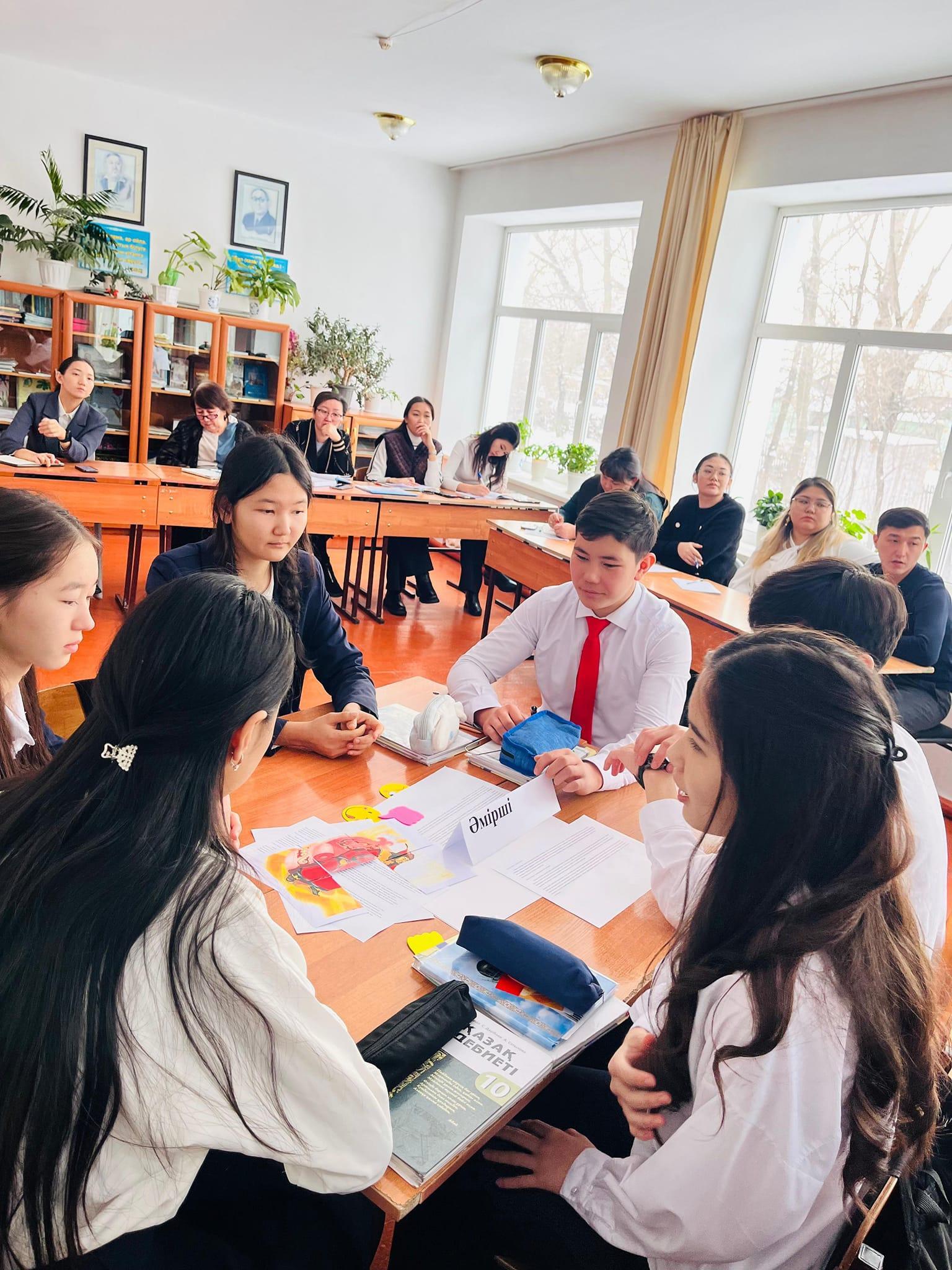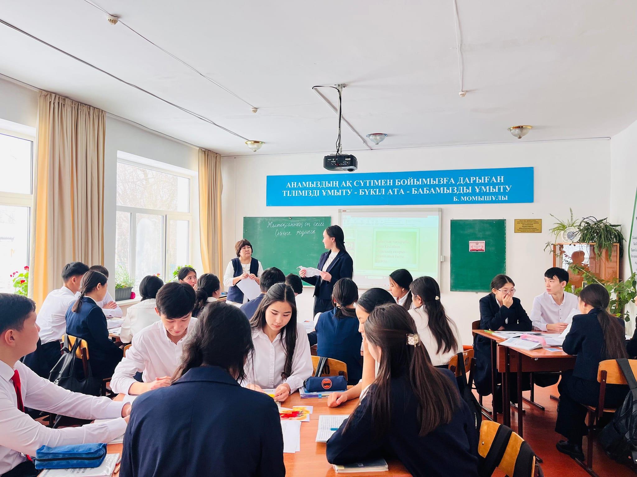 Кенжегуль Шайхыслямовна 10 “В” сыныбында «Әбіш Кекілбаев «Аңыздың ақыры» романының идеясы» тақырыбында ашық сабақ өткізді.
