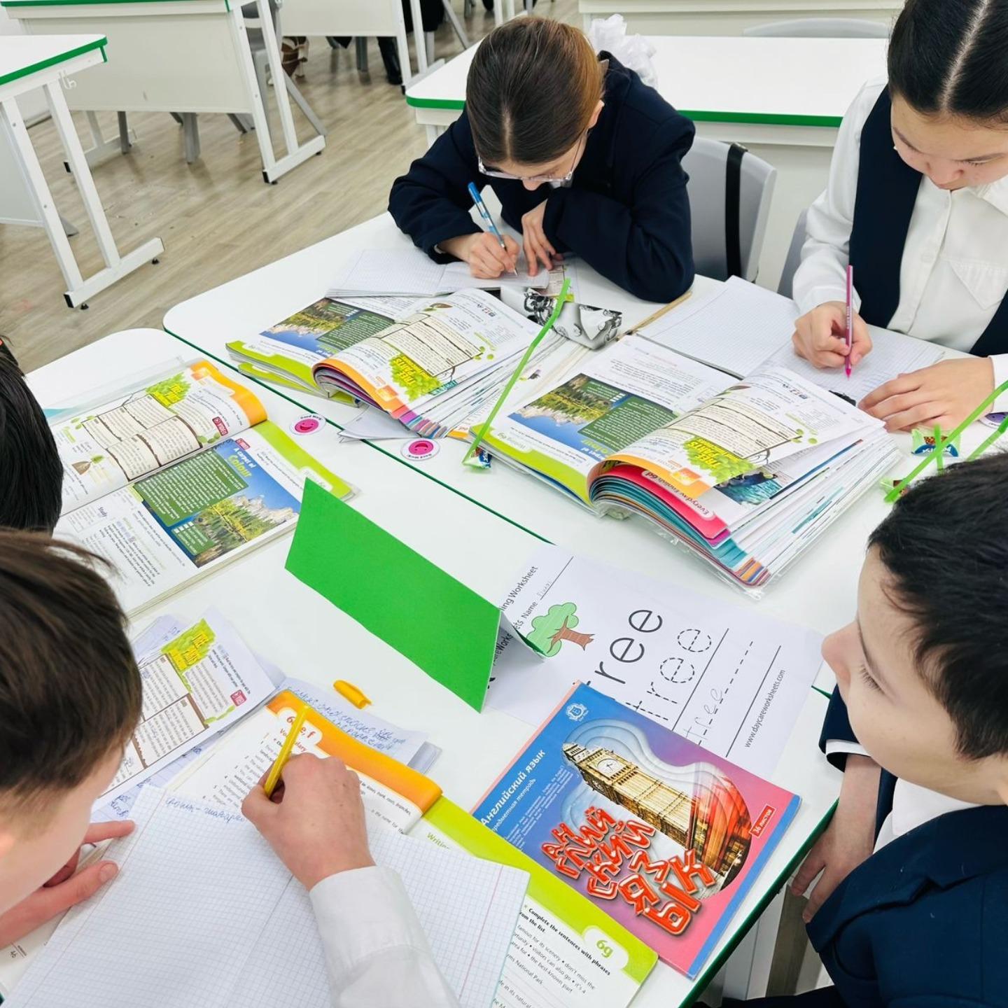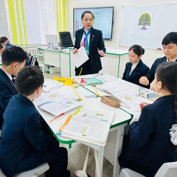Апталық аясында ағылшын тілі пәні мұғалімі Баяндинова Гульнур Нурлановна 8 «Г» сыныбында "Across curriculum.Tree parts and functions" тақырыбында ашық сабақ өткізді. Сабақ барысында learning app, word wall платформаларын тиімді қолданып, жаңа сөзді тексеру барысында "Тарсия" әдісі қолданылды. Оқушылар сабаққа белсене қатысты.
