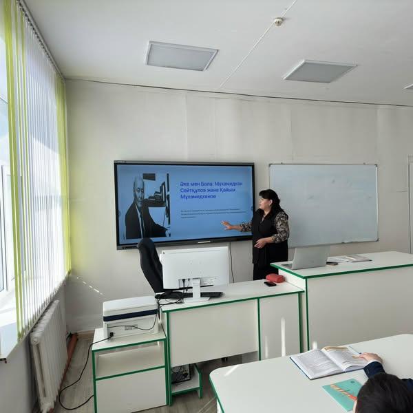 2025 жылдың 25 ақпаны күні “Әке мен Бала: Мұхамедхан Сейтқұлов және Қайым Мұхамедханов” тақырыбында 8 "Г" сынып оқушыларымен тарих пәнінің мұғалімі А.Д.Нурмухаметова танымдық сабақ өткізді. Сабақ барысында романдар мен повестерін,негізгі шығармаларын, әдебиетке қосқан үлесін сабақ барысында талқылады. Әке мен баланың әдеби мұрасының тақырыптарының ұқсастығын, шығармашылық тәсілін, жазу стилін сөз етті.