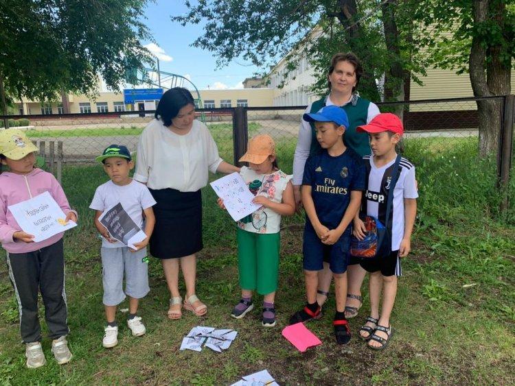 Мектепішілік "Күншуақ 'лагерінде жоспар бойынша "Бала квест" ойыны ұйымдастырылды. Қазынаны іздеу арқылы жүзеге асатын бұл ойын 8 аялдама бойынша жүргізілді. Аялдамалардан жүру бағытын анықтау үшін маршруттық карта беріліп отырды. Әр аялдамада балалар қызыға пазл құрастырып, түрлі логикалық тапсырмаларды орындады. Балалар ұшқыр ой, зеректіктерін, шапшаңдықтарын танытты. Ойын соңында қазынаны тапты. Әр топ белсене қатысқаны үшін мадақталып, шағын сыйлыққа ие болды.