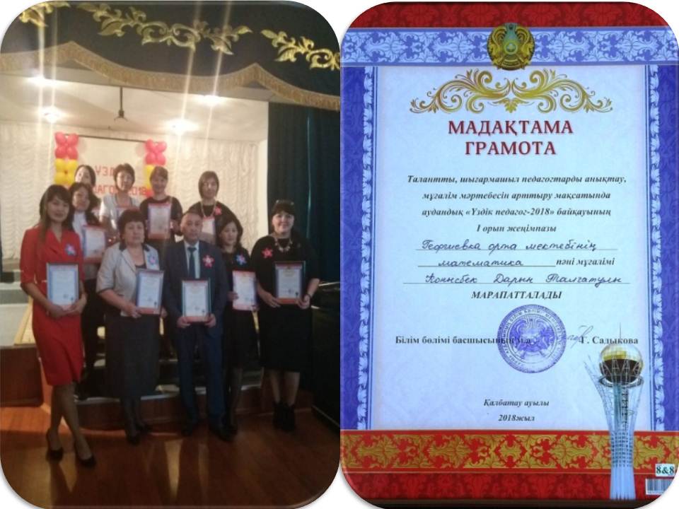 Байқауға ауданымыздың барлық мектептерінен іріктелген 11 мұғалім қатысты. Георгиевка орта мектебінің атынан математика пәні мұғалімі Конысбек Дарын Талгатулы қатысып, өзінің іздемпаз, шығармашылықпен жұмыс істейтін ұстаз екенін дәлелдеп жүлделі I орынды жеңіп алды.