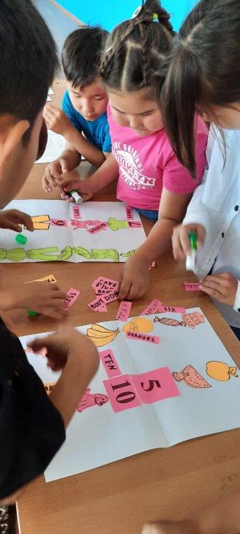 2022 жылдың 11 шілде күні "Күншуақ" жазғы лагерінде Д.Ө.Мамырбекова "Enjoi english" атты шағын іс-шара өткізді. Балалар шара барысында үш тілде сөздердің аудармасын тауып, үш тілде мақал-мәтел айтып жарысып, кесілген әріптерден сөздер құрады және жылдам орын тап ойыны арқылы жасырын сөзді табу ойыны ойнатылды. Келесі кезекте берілген суреттерге сәйкес жазулар жапсыру тапсырмасын орындап, барлық балаға шара соңында дәмді тәттілер берілді.