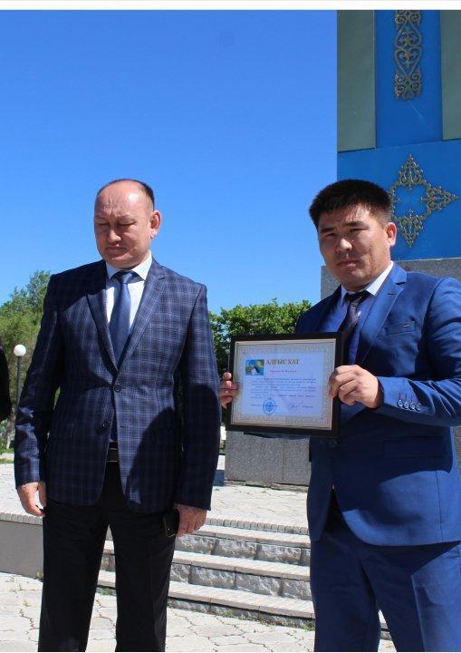 4 июня 2018 года в нашем районе было проведено торжественное мероприятие посвящённое Дню Государственных символов Республики Казахстан. Заместитель акима Жарминского района Ибраев А.вручил Благодарственные письма участникам мероприятия. Благодарственным письмом был награждён учитель истории КГУ «Георгиевская средняя школа» Есентаев Ади Максутович.
