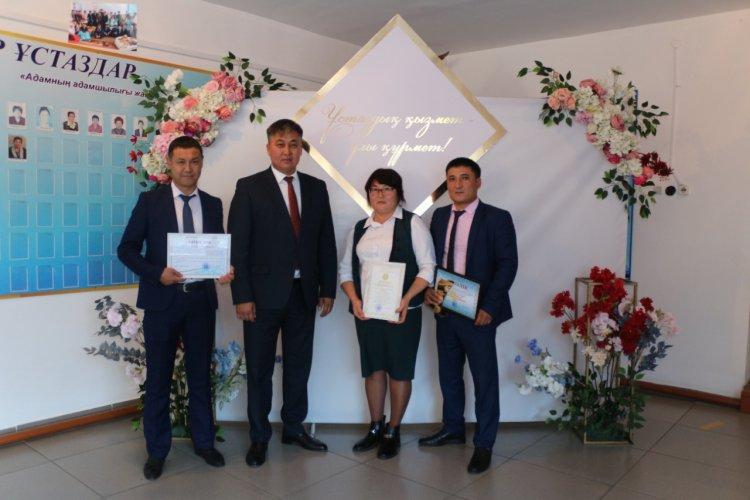 "Ұстаздар күні" мерекесіне орай "Георгиевка орта мектебі" КММ-нің физика пәні мұғалімі Дайров М.Т. 2021-2022 оқу жылының қорытындысы бойынша дарынды оқушылар тәрбиелеудегі жетістіктері үшін "Жарма ауданы білім бөлімі" ММ-нің басшысы К.Шаймуратовтың КУӘЛІГІМЕН және "ҮЗДІК ФИЗИКА ПӘНІ МҰҒАЛІМІ" АТАҒЫН, дене шынықтыру пәні мұғалімі Бейсембаев А.Ө. Жарма ауданы әкімінің АЛҒЫС ХАТЫМЕН, химия пәні мұғалімі Ашубаева Ж.Т. "Абай облысының білім басқармасы" ММ басшысының ҚҰРМЕТ ГРАМОТАСЫМЕН марапатталды. Марапат иелерін құттықтап, шығармашылық табыс, еңбектеріне жеміс тілейміз!