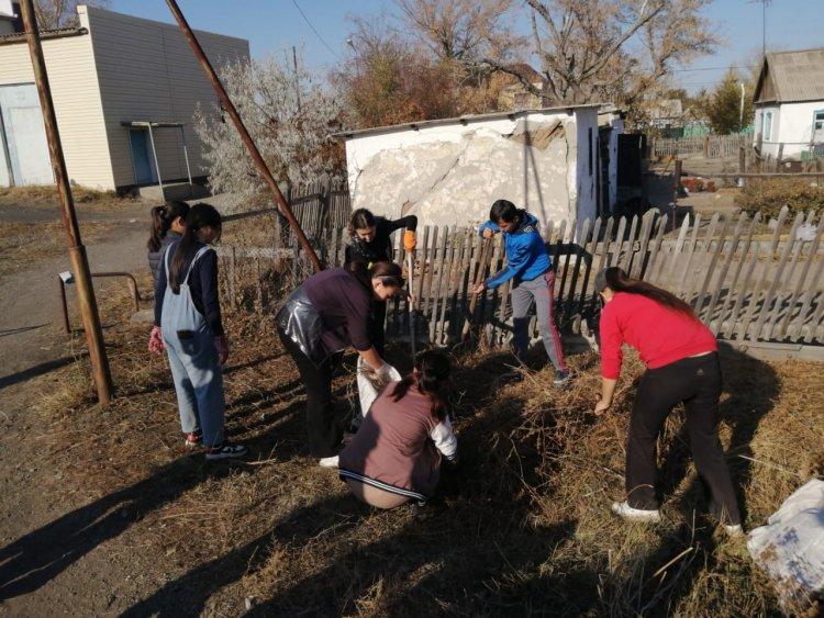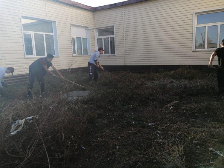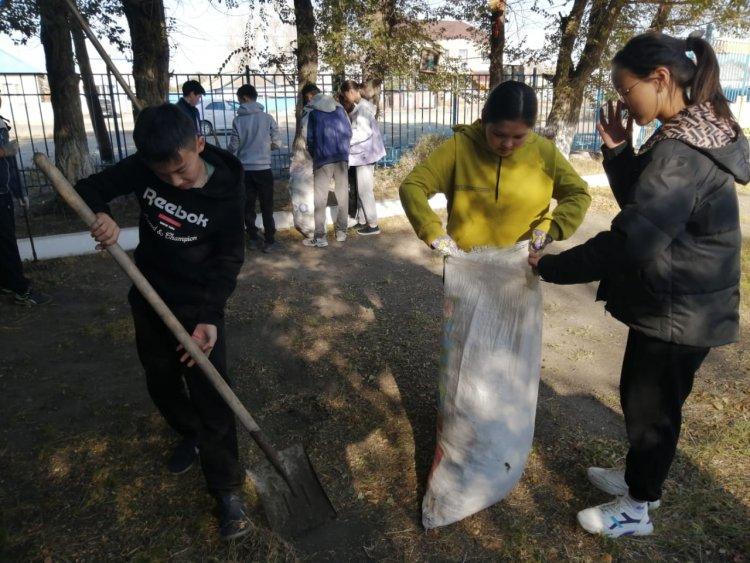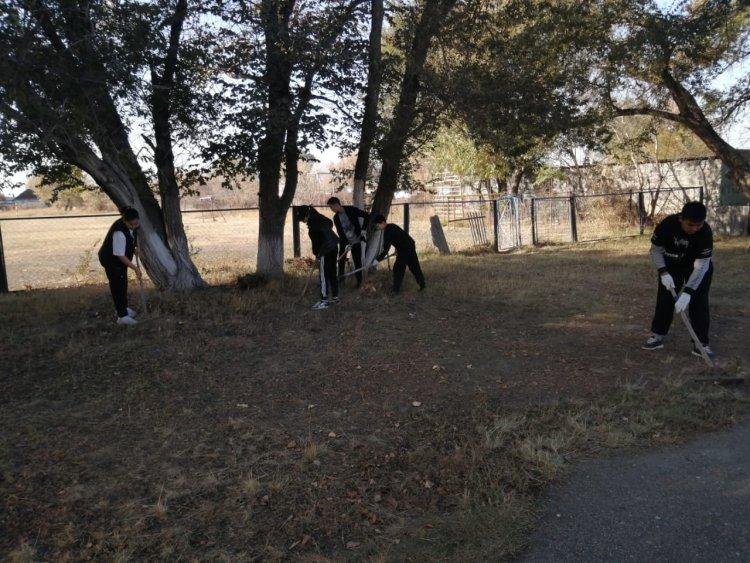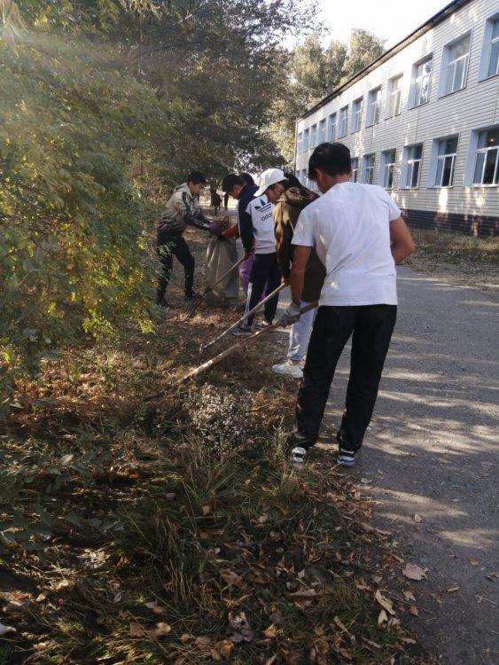 7 қазан күні мектебімізде «Арайлы алтын күз» атты апталық аясында 8-10- сынып оқушыларының қатысуымен сенбілік өтті. "Еңбек түбі - береке" деп халқымыз еңбек ету арқылы мәнді де сәнді өмір сүруге болатындығын әрқашан насихаттаған. Сондықтан еңбекке деген қажеттілікті, дағды мен іскерлікті, еңбекқорлықты, өзгенің еңбегін құрметтеуге тәрбиелеуді мектептен үйрету мақсатында мектеп ауласын жапырақтан тазалау және түлектер аллеясындағы раушан гүлдерін қию жұмыстары жүргізілді.