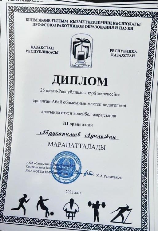 Республика күніне орай мектеп педагогтері арасында өткен облыстық  волейбол жарысында "Георгиевка орта мектебі"КММ-нің дене шынықтыру пәні мұғалімі Абдукәрімов А.Қ.  ІІІорынды иеленді. Марапат иесін құттықтаймыз!