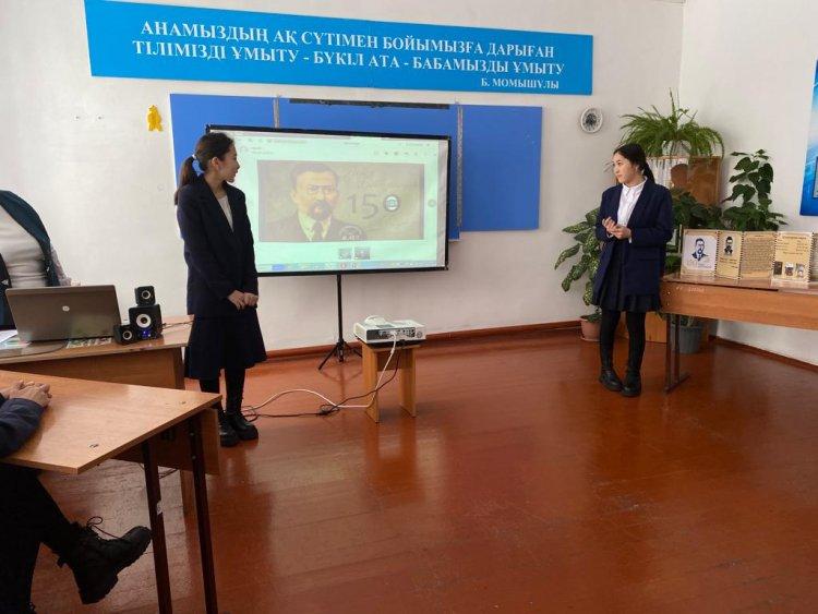 "Тілім менің - тірлігімнің айғағы" атты апталық аясында қазақ тілі мен әдебиеті пәні мұғалімі  У.А.Карманова "Ахмет Байтұрсынов — түрколог ғалым, әдебиеттанушы" тақырыбында 10-сыныптармен конференция сабағын өткізді. Оқушылар ақынның өмір жолы мен шығармашылығын  өздерінше зерттеп, әзірлеген материалдарын ортаға салды.