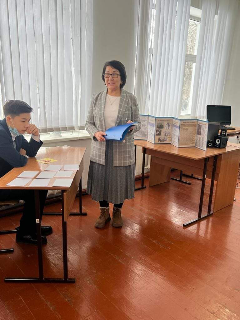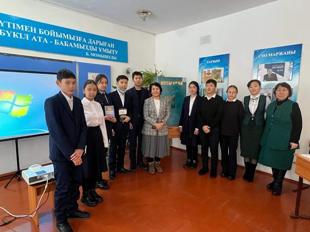 "Тілім менің-тірлігімнің айғағы" атты апталық аясында қазақ тілі мен әдебиеті пәні мұғалімдері Ш.К. Кемерханова мен Д.Е. Қадылбеков 9 сынып оқушыларымен М.Әуезовтің өмірі мен шығармашылығына байланысты "М.Әуезов-данышпан, ойы сомдалған алып тұлға..." атты зияткерлік сайыс өткізді. Сайыс барысында мұғалімдер оқушыларды Абай жолы роман-эпопеясымен таныстырып, оқушыларды ұлылардың өмірінен үлгі алуға баулуға, шығармашылық танымдарын толықтыруға өз үлестерін қосты.