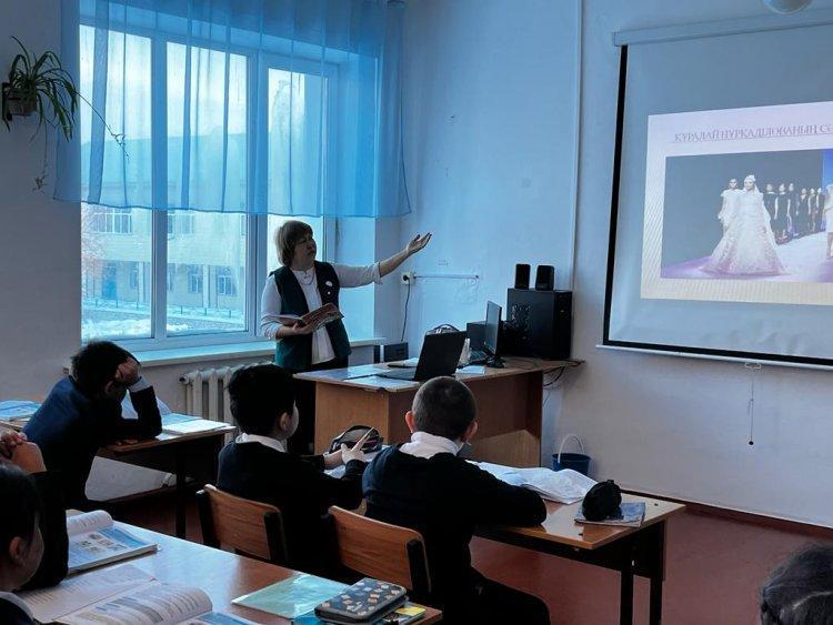 Қазақ тілі мен қазақ әдебиеті пәні мұғалімдерінің "Туған тілім - тірлігімнің айғағы" атты апталық аясында Кенжегуль Шайхыслямовна Уайданова 4 "А" сыныбында "Дизайнер" тақырыбында ашық сабақ өткізді . Мұғалім сабақта "Кофе таяқшалары", "Баяндамашының кері байланысы " әдістері арқылы сабақты қызықты өткізе білді. "Жүзіп шығу" әдісі арқылы сабақты қорытындылады.