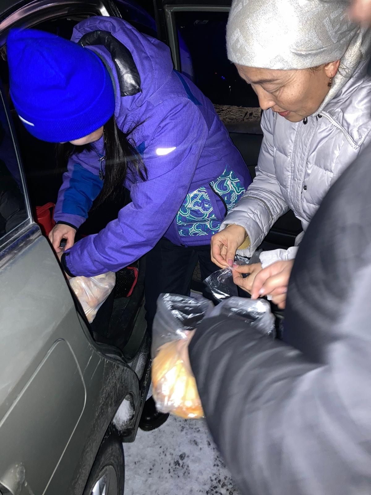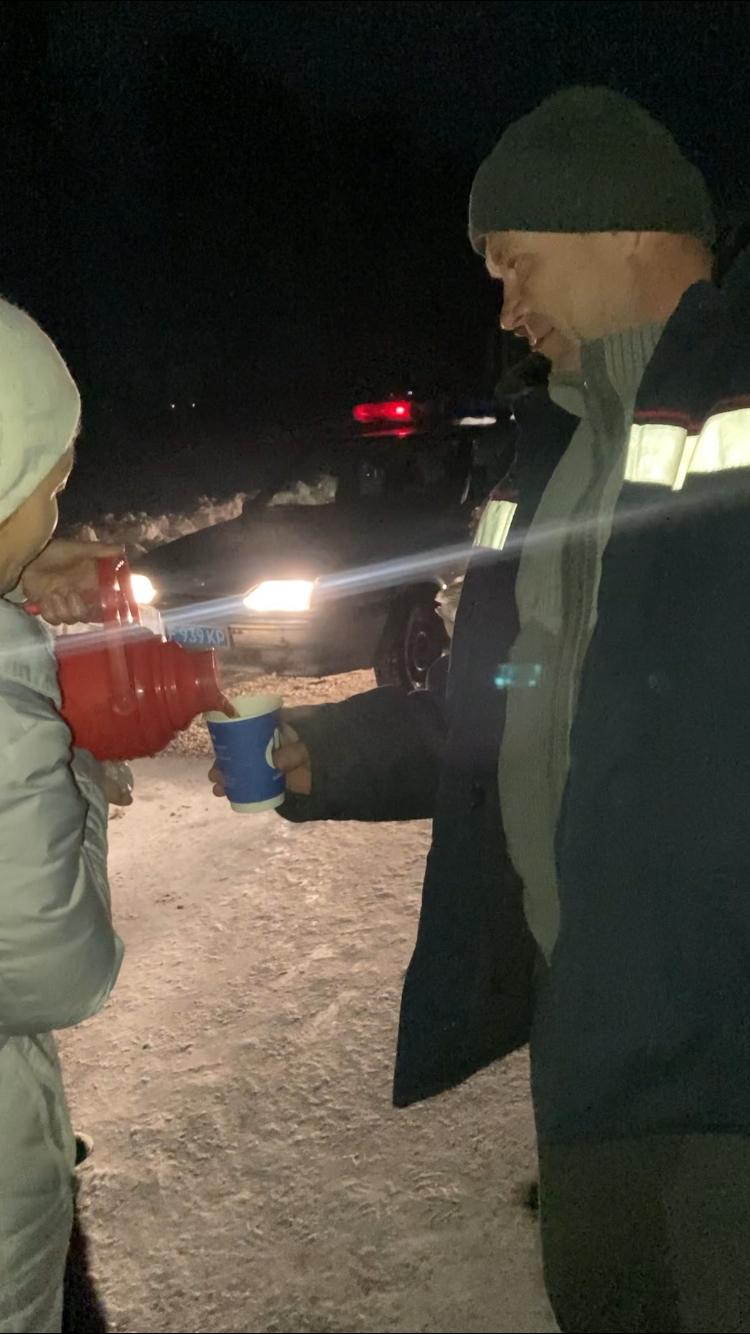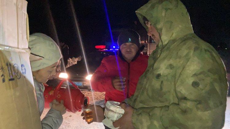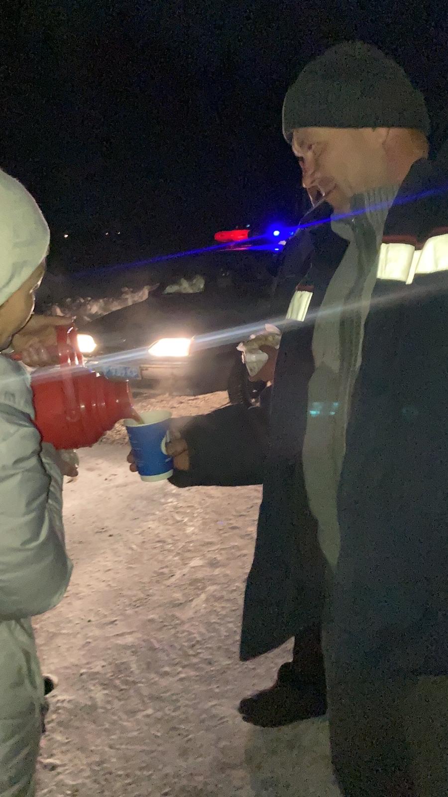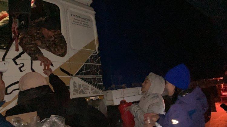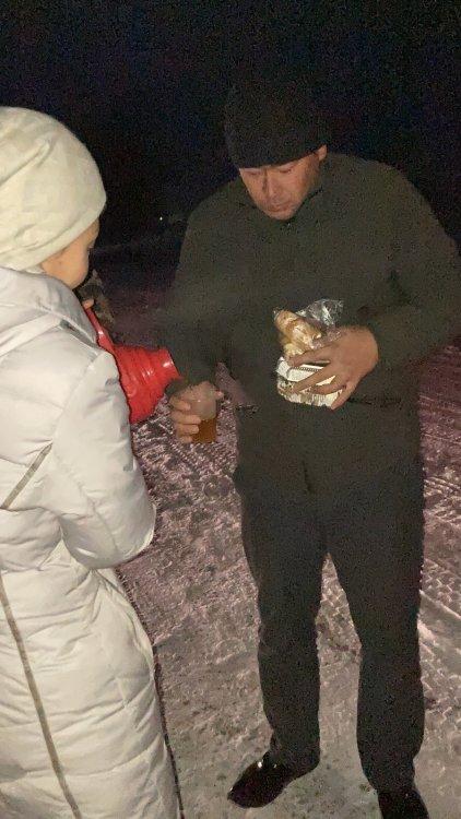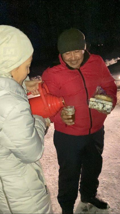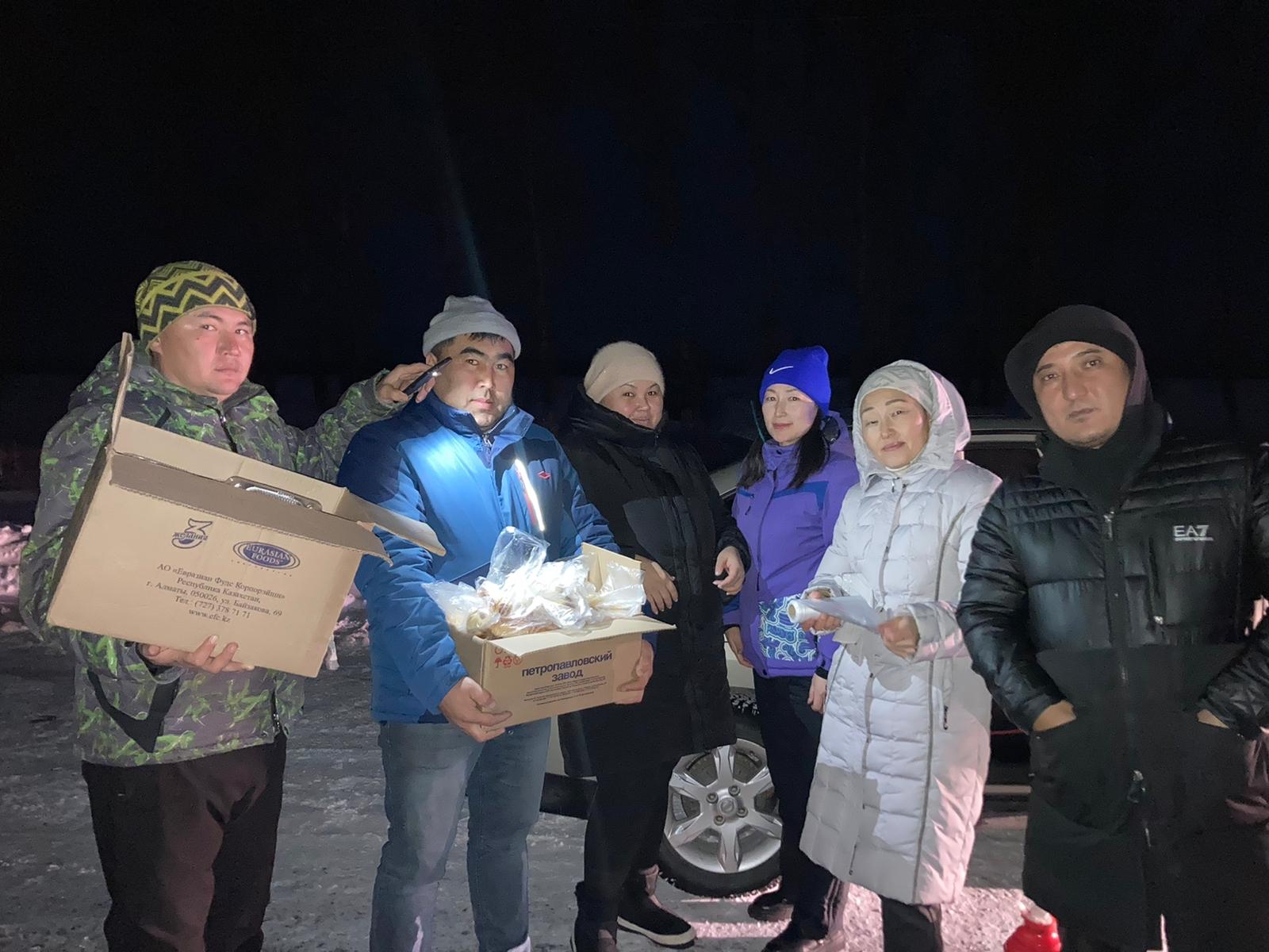 Жүргізушілер мен жолаушыларды ыстық тамақ, ыстық шаймен қамтамасыз етіп, қолдау көрсетті.