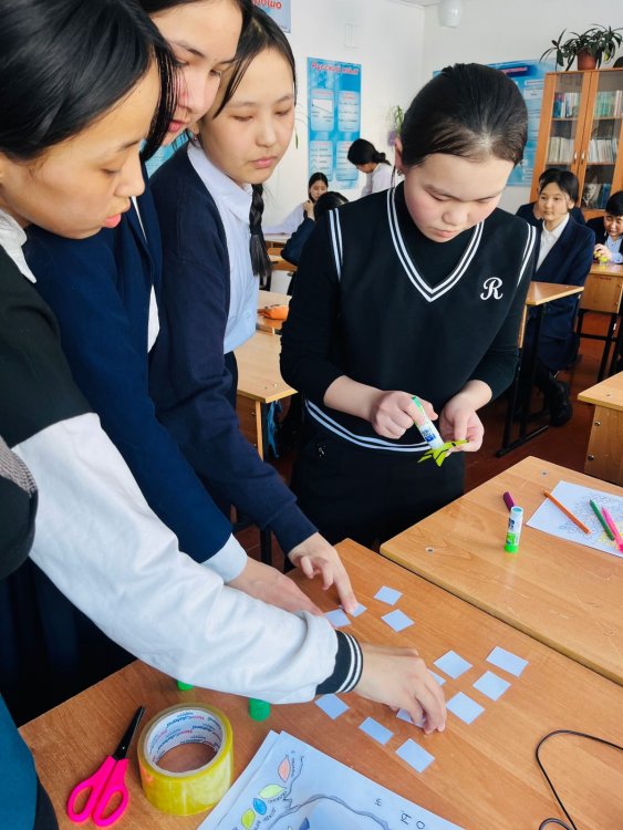 22 ақпан күні «Георгиевка орта мектебі» КММ-де мектеп психологтары А.Кокиева мен Б.Қабидоллаеваның ұйымдастыруымен 8«В» сынып оқушыларымен өзара қарым-қатынасты дамыту, өзін–өзі бағалауын арттыру, көңіл-күйді және эмоцияны реттеу мақсатында «Жағымды қарым-қатынас» тақырыбында психологиялық жұмыс ұйымдастырылды. Жұмыс барысында бірнеше жаттығулар өткізілді. Атап айтсақ: «Сен күштісің», «Көңілді іздер», «Бәрі жұлдыздар» және «Ауа райы ағашы» арт-терапиясымен жалғасын тапты. Жұмысқа оқушылар өте белсенді қатысып, өз ойларын ашық жеткізе білді.