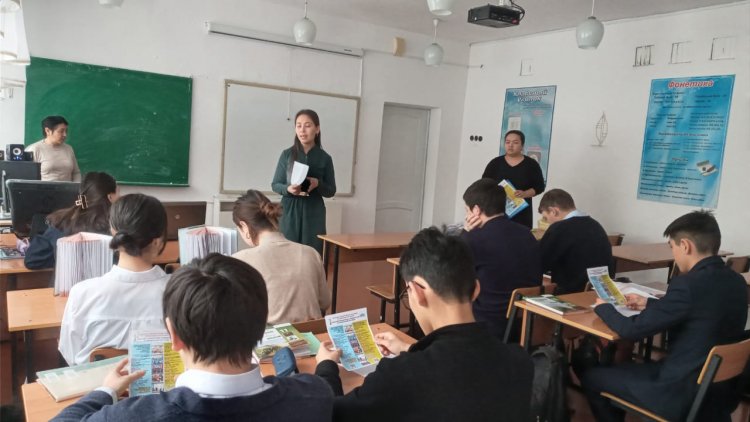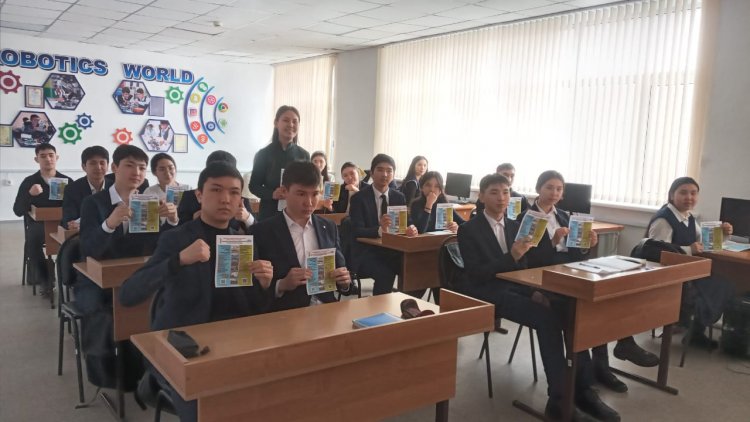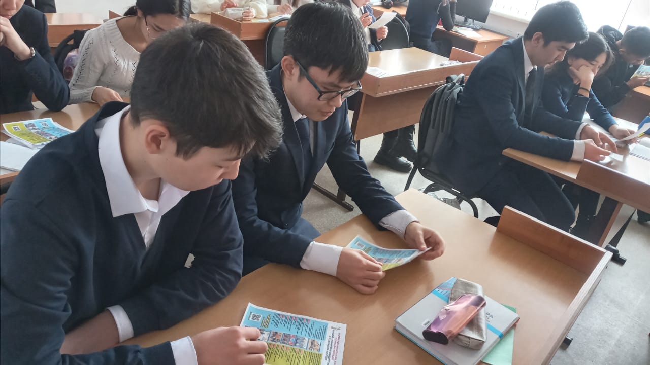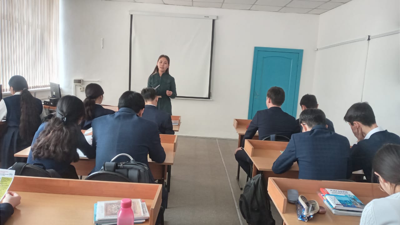 Жоғары гуманитарлық-заң және техникалық колледжінің мамандары 9,11-сынып оқушыларымен кәсіптік бағдар беру бағытында әңгіме жүргізіп, аталған колледждің дайындайтын мамандықтары мен студенттерге жасалған жағдай жайлы айтып өтті.