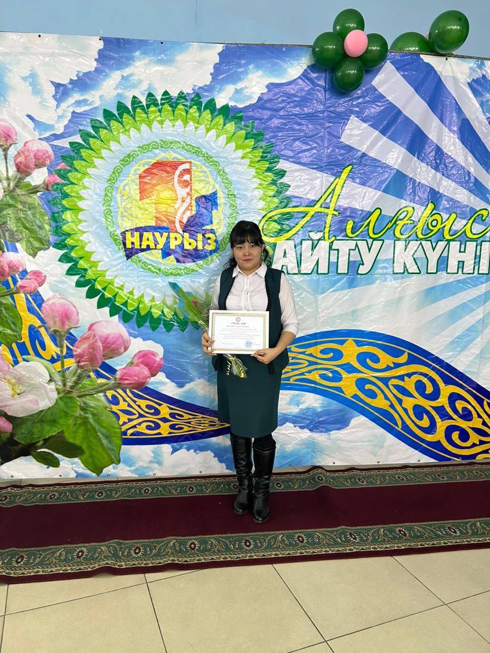 Байбатшаева А.С. аудан әкімі Ж.Байсабыровтың Алғыс хатымен марапатталды » «Георгиевка орта мектебі» КММ