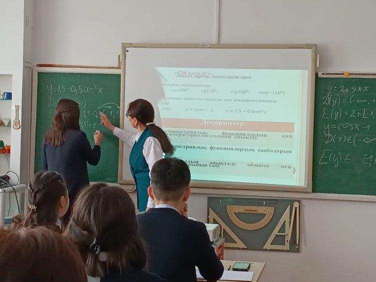 2023 жылдың 2 наурыз күні 9 «Ә» сыныбында «Тригонометрия формулалары» тақырыбында математика пәнінен ашық сабақ өтті. Пән мұғалімі Догалбаева Г.Ж. Мұғалім өз жұмысында жаңартылған білім бағдарламасының әдістерін ғана емес, сонымен қатар оқушы тұлғасын дамытуға жұмыс істейтін тұлғалық және коммуникативті оқытудың жаңа технологияларын да пайдаланды. Атап айтсақ, «Өзіңді тексер», «Қарқын», «Plickers», «Learning apps», «Ойлан – жұптас, бөліс», «Жеке жұмыс», «Cast lots» әдістерін қолданды. Оқушылар өз білімдерін бағалау парағына белгілеп, қорытынды ұпайларын жинап, білім деңгейлерін өздері бағалады. Сонымен қатар, сабақта көзге арналған жаттығулар жасалды. Сабақ соңында мұғалім сараланған әдісті қолдана отырып, өзіндік жұмыс жүргізді. Сабақ өз мақсатына жетті. Бұл сабақ мұғалімнің өз жұмысында ақпараттық-коммуникациялық, денсаулықты сақтайтын, оқушы біліміне бағытталған технология элементтерін белсенді қолданудың жаңа үлгілерін көрсетті.