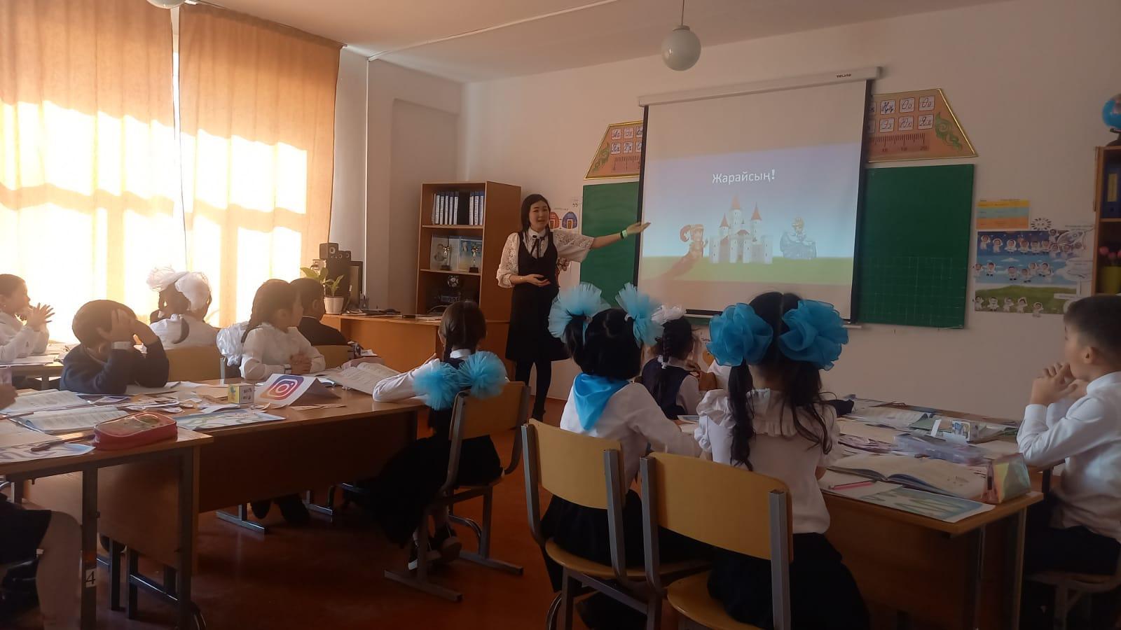 2023  жылдың 11 сәуір күні бастауыш сынып мұғалімі  Кызжанова Мадина Жумагалиевна 2 «Г» сыныбында "Тиімді есептеу тәсілдері" тақырыбында ашық сабақ өткізді. Сабақ мақсаты: қосу мен көбейтудің қасиеттерін тиімді есептеуде қолдану. Санды және әріпті өрнектерді құру, салыстыру. Сабақ барысында мұғалім жекелей, топтық жұмысты ұйымдастырып,  " Кім жылдам?", "Сәйкестендіру", "Бал арасына көмек", "Ойлан, тап, бөліс" әдістерін қолданды. Сергіту сәті нейрожаттығу арқылы өткізіліп, "Smart" сағат тағу арқылы бағаланып, "Фотоаппарат" әдісімен кері байланыс жасалды.
