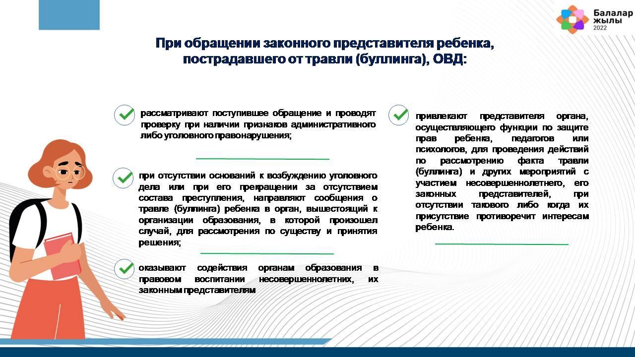 16. При обращении законного представителя ребенка, пострадавшего от травли (буллинга), ОВД: