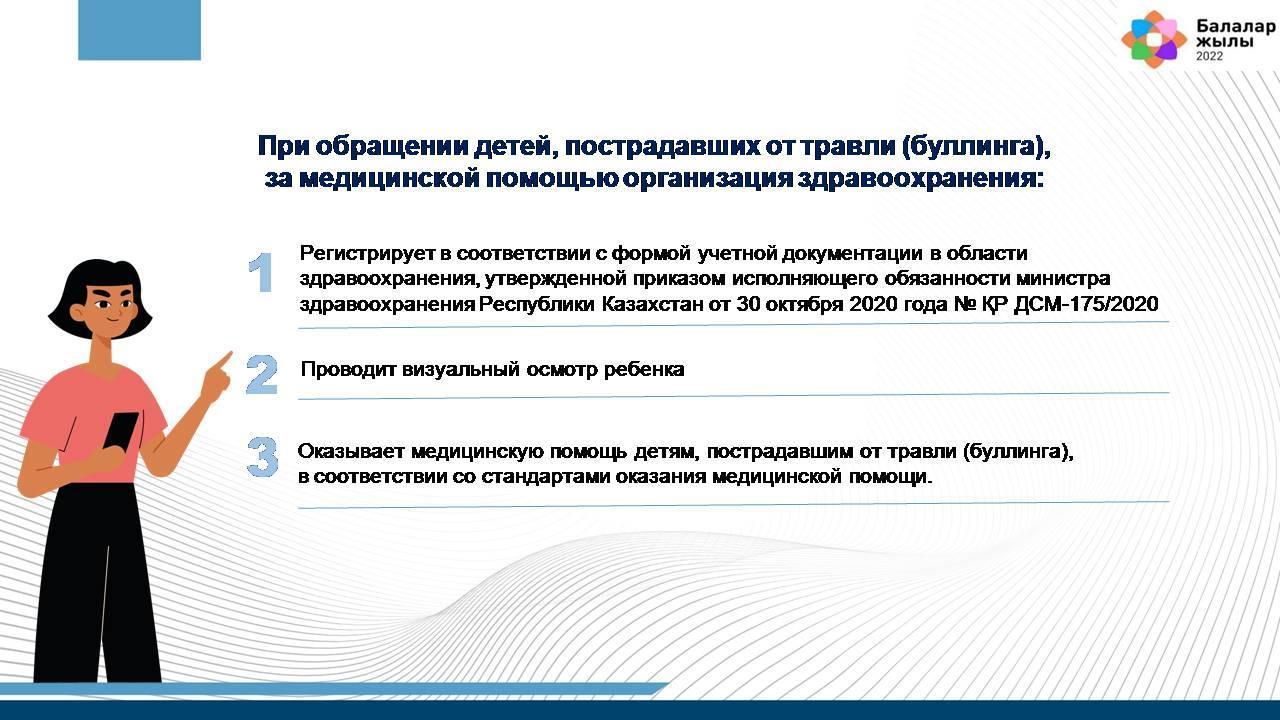 3) оказывает медицинскую помощь детям, пострадавшим от травли (буллинга), в соответствии со стандартами оказания медицинской помощи.