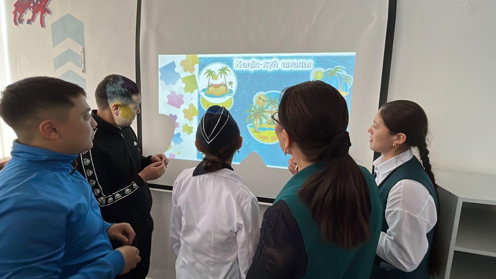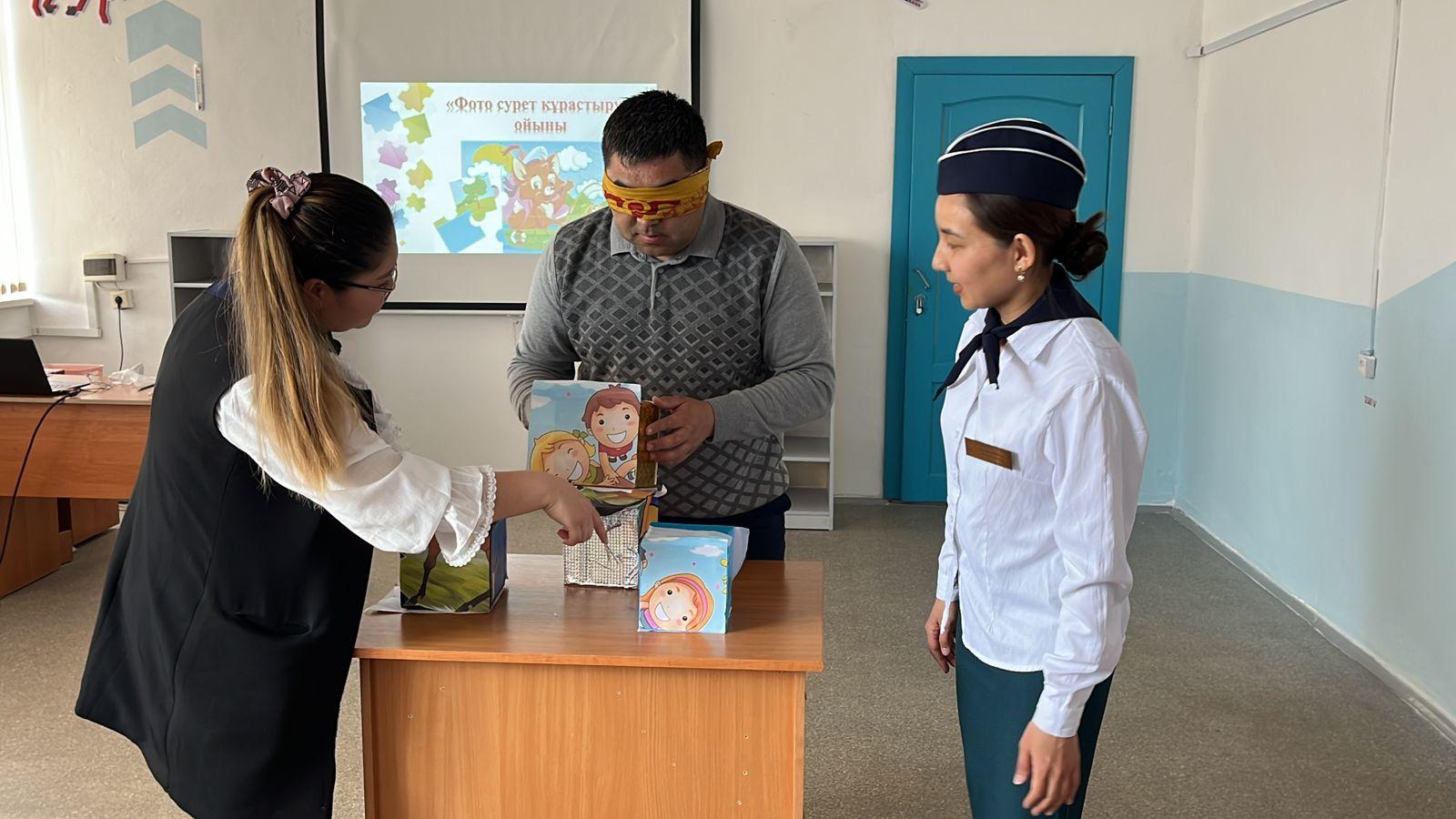 2023 жылдың 26 сәуір күні “Жас мамандар” апталығы аясында мектеп психологы Қабидоллаева Балнұр Асхатқызы мұғалімдер арасында карым-катынасты нығайту, жағымсыз көңіл-күйден арылу, күш-қуат жинау, өзін еркін сезінуге кемектесу және көңіл-күйлерін көтеру мақсатында «Мұғалім-мектеп жүрегі» атты психологиялық тренинг жургізді.