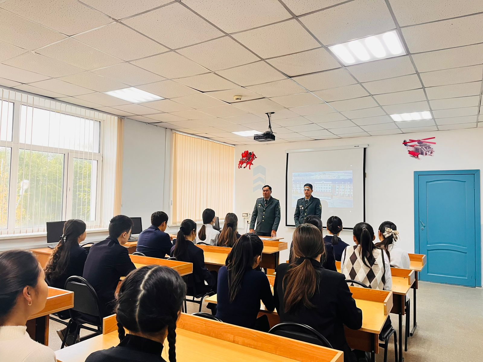 29 қыркүйек күні мектебіміздің 10-11-сынып оқушыларымен Ұлттық Ұлан академиясының 5511 әскери бөлімінің өкілдері келіп, кәсіптік бағдар беру мақсатында түсіндірме жұмысын жүргізді. Оқуға қабылдану, оқу орнындағы студенттерге жасалатын жағдай жайлы кеңінен ақпарат беріп, үгіт-насихат жұмысын жүргізді. Болашақ түлектеріміз өздерін қызықтырған сауалдарын қоя отырып, тиісті жауап алды.