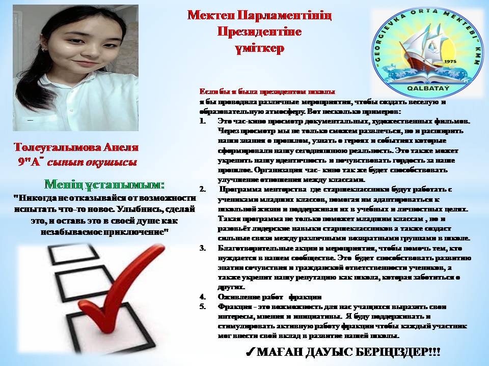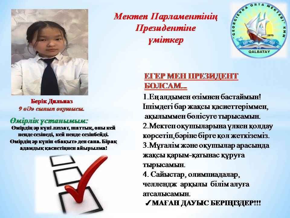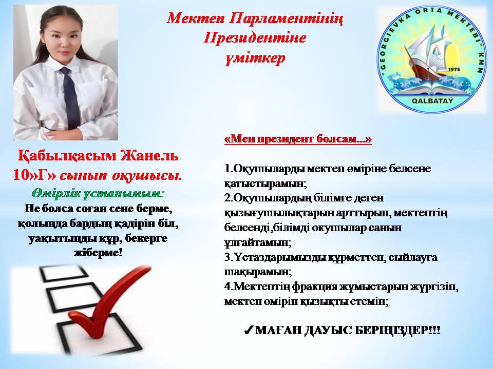 МЕКТЕП ПАРЛАМЕНТІ ПРЕЗИДЕНТІНІҢ САЙЛАУЫ » «Георгиевка орта мектебі» КММ