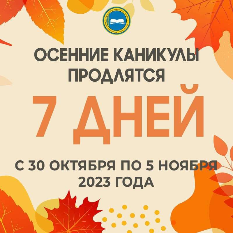 🗓️В казахстанских школах завершается первая четверть. Осенние каникулы продлятся семь дней – с 30 октября по 5 ноября 2023 года включительно.