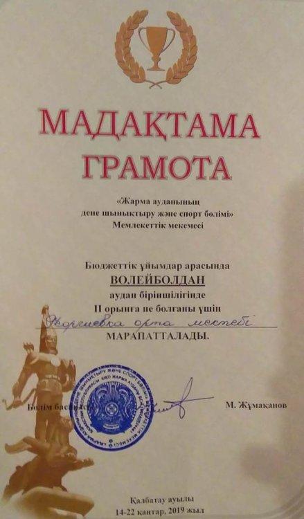 2019 жылдың қаңтар айында Жарма ауданының бюджеттік ұйымдары арасында өткен волейбол жарысында «Георгиевка орта мектебі» КММ – нің ерлер командасы жүлделі екінші орынды иеленді.