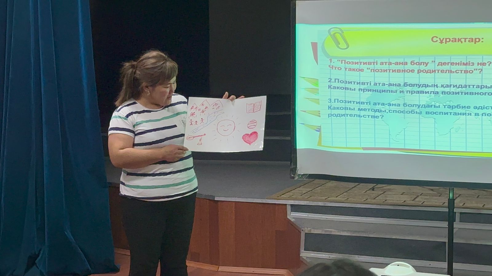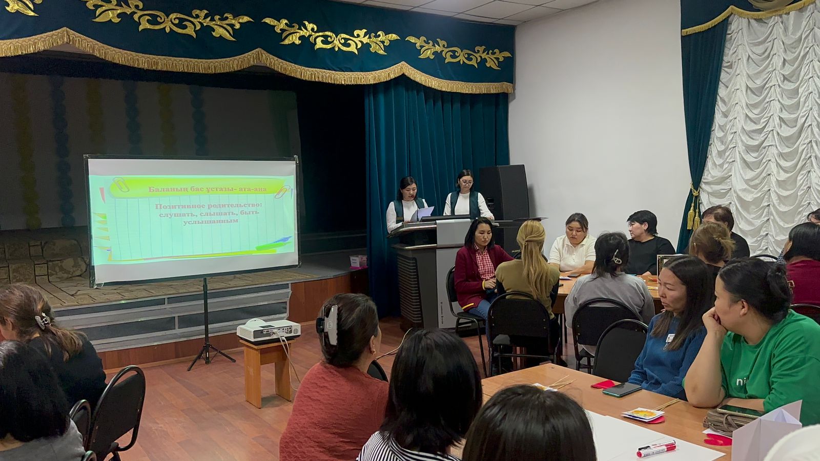 2023 жылдың 16 қараша күні «Ата-аналарды педагогикалық қолдау» орталығы қызметі аясында 5-9-сынып ата-аналарымен "Баланың басты ұстазы - ата-ана" тақырыбында семинар-тренинг ұйымдыстырылды. Тренинг "Позитивті тәрбие" бағытында жүргізіліп, ата-аналар белсене қатысты.