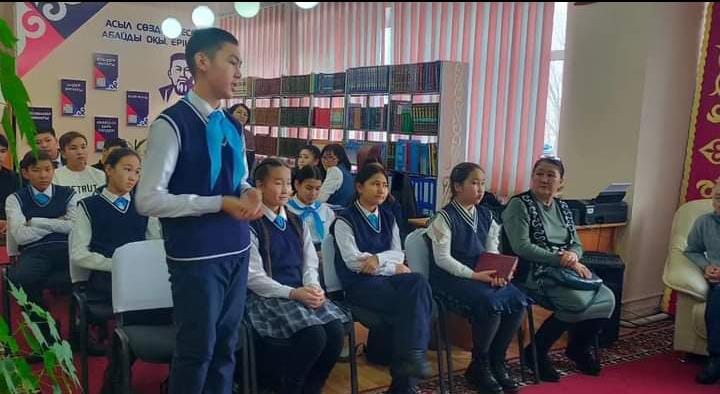 «Бір ел бір кітап» акциясы аясында аудандық кітапханада өткен «Жарқын бейне» атты іс-шараға  мектебіміздің   8-сынып оқушылары мен ұстаздары  қатысты. Төлен Әбдіковтің  «Қонақтар» атты танымдық шығармасы сұрақ - жауап ретінде талқыланып, оқушылар қызығушылықпен  өз  ойларын ортаға салды. Аталған әңгімеге байланысты  өздері шығарған өлеңдерін оқыды. Сонымен қатар, акцияға қатысушылар іс-шара соңында марапатталып, сый-сияпатқа ие болды.