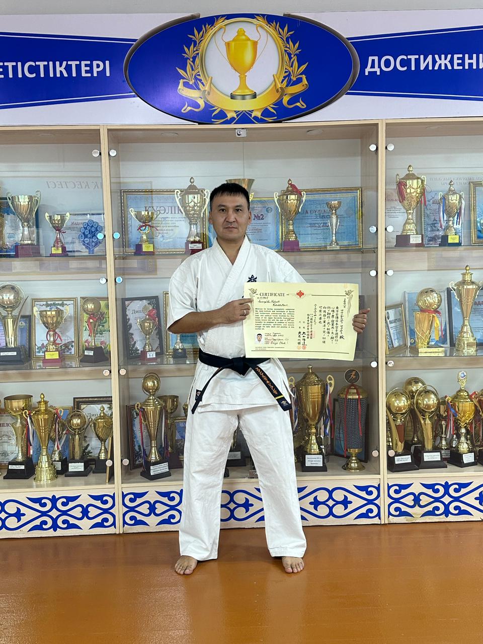 "Георгиевка орта мектебі" КММ-нің "Киокушинкай каратэ" үйірмесінің жетекшісі Амангелды М.А. 5 сағаттық емтихан барысында 30рет жекпе-жекте қарсыласын жеңіп алды. Каратэ бойынша қара белбеуге ие болып, "Шебер" атағын алды. Әріптесімізді құттықтап, жетістіктерге жете беруіне тілектестігімізді білдіреміз.