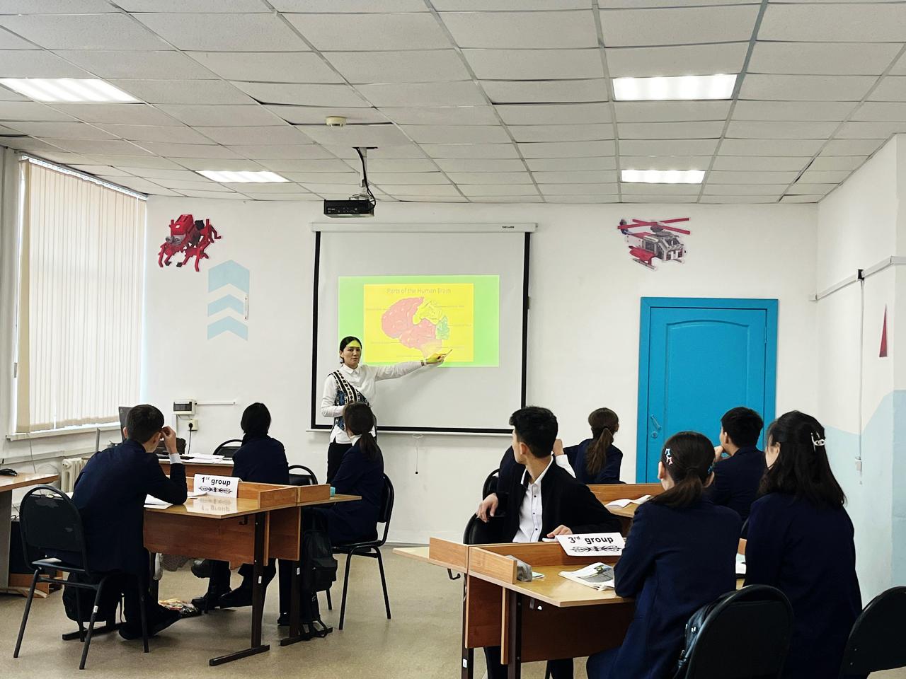 Аттестациядан өтетін мұғалімдер апталығы аясында Сақаева Қаламқас Нұрланқызы 10 "Б" сыныбында ағылшын тілі пәнінен "Capabilities of the human brain" тақырыбында ашық сабақ өткізді. Сабақ мақсатына жету үшін тақырыпты табу мақсатында d-id платформасы арқылы жасалған суретті сөйлету әдісі қолданылды.  Үй тапсырмасы “Duel game” ойыны арқылы тексерілді. Сабақ барысында оқушылар «фонарик» әдісі арқылы топқа бөлініп, әртүрлі тапсырмалар орындап, 4 дағдымен жұмыс жасалынды. «Еxit ticket» әдісі арқылы оқушылар сабақтан алған әсерлерімен бөлісті. Сабақ өз мақсатына жетті.
