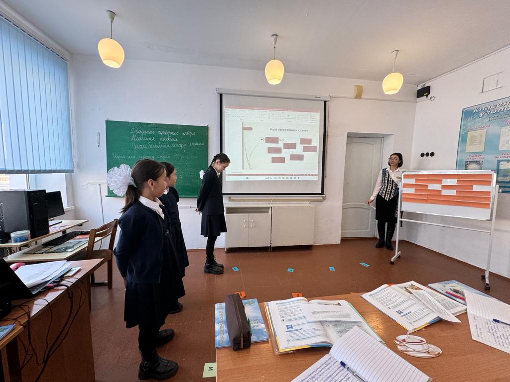 24 января 2024 года в рамках недели аттестуемых учителей Баяндинова Гульжан Тургазиновна - учитель русского языка и литературы провела открытый урок в 6 «Б» классе на тему «Древнекитайская цивилизация». Урок начался с психологического настроя «Дарю хорошее настроение». Для повторения пройденной темы использовался метод "Барабан", где учащиеся составляли предложения с предлогами. Через видео материал и прослушивание музыки было введение в тему урока. На уроке были охвачены все четыре навыка: чтение, слушание, говорение и письмо. Все этапы урока плавно переходили один в другой. Используя активные методы обучения, как «Восстанови стену», «Собери пословицу», «В гостях у соседа» лексическая и грамматическая тема урока не вызвала затруднений у детей. Все ученики активно с интересом работали на уроке, показали хорошее знание русского языка, умение работать самостоятельно. Учитель успешно достиг поставленных целей урока.