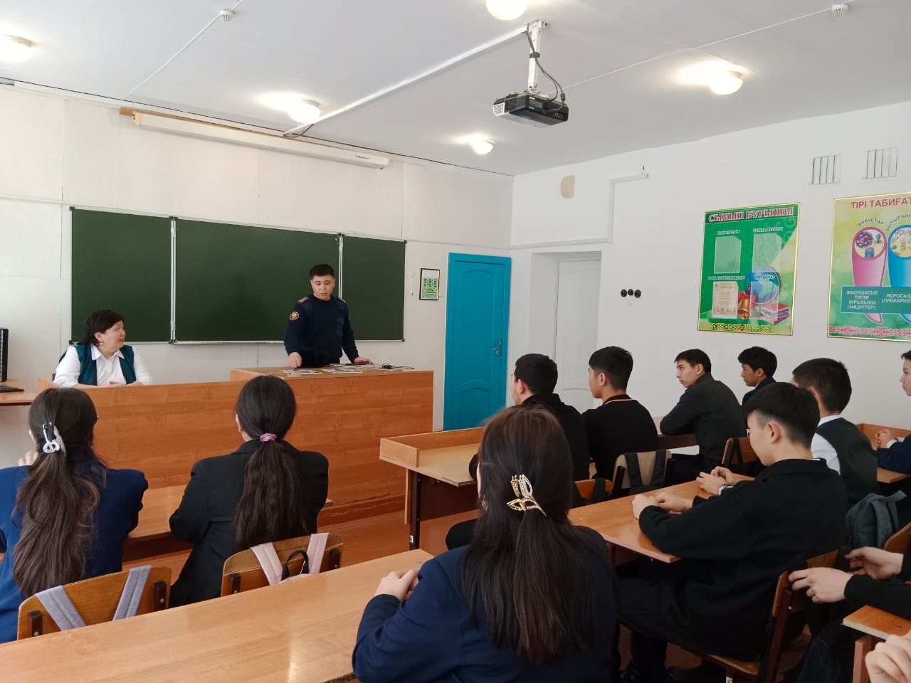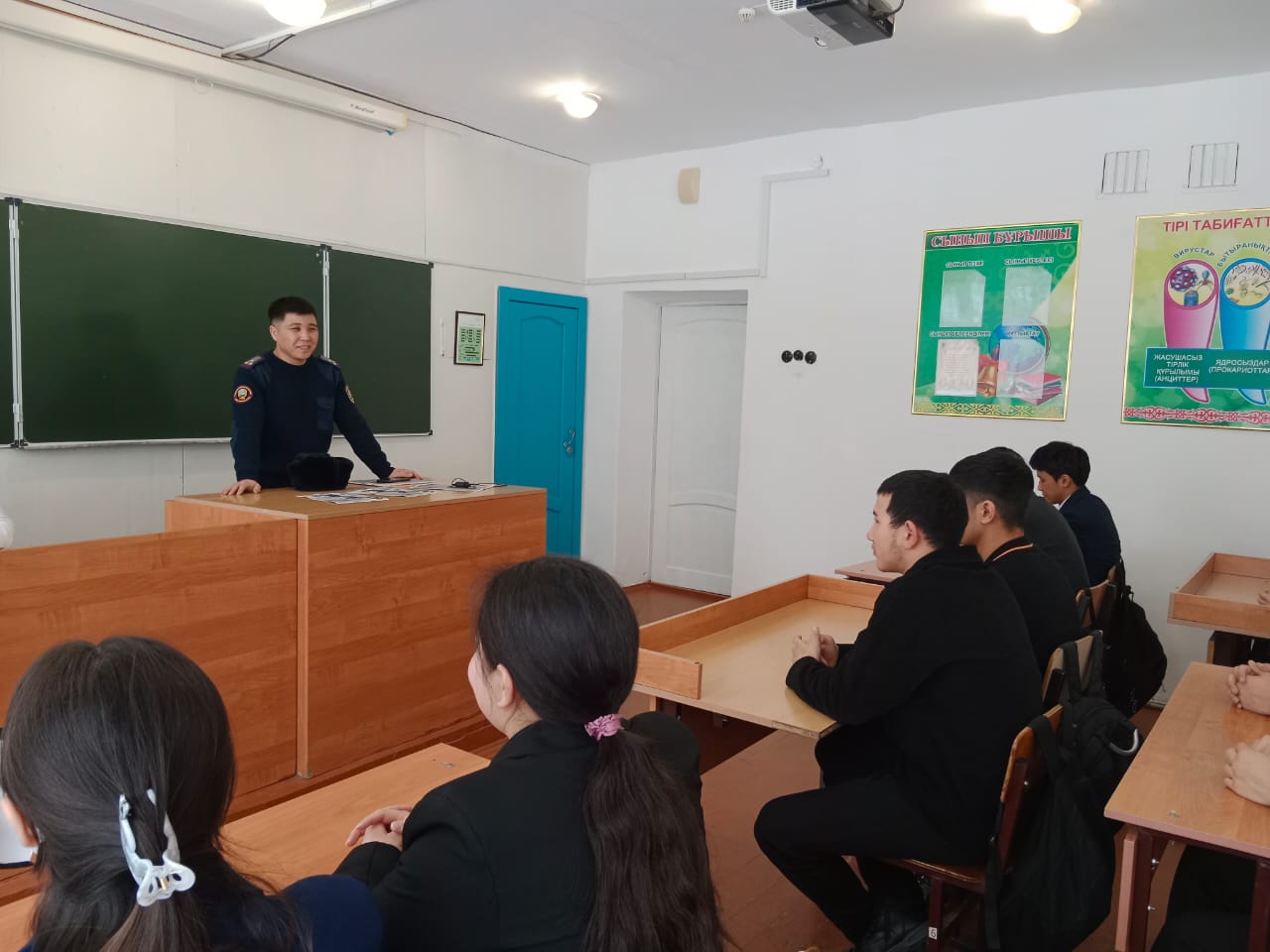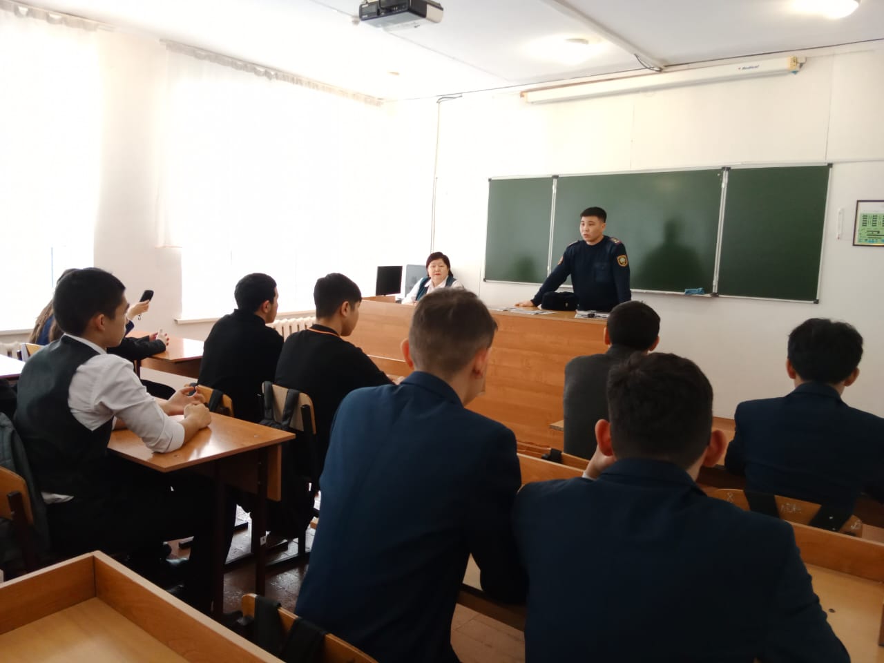 Жарма аудандық өрт сөндіру бөлімінің қарауыл бастығы, азаматтық қорғау  капитаны Махметов Асхат Ануарович келіп,  кәсіптік бағдар бойынша 11-сынып оқушыларымен әңгіме жүргізді. Өрт сөндіруші қызметінің жайы мен күйін, оқу барысы мен жұмысқа орналасудағы жеңілдіктермен таныстырды. Болашақ  түлектер үшін құнды ақпаратымен бөлісті.