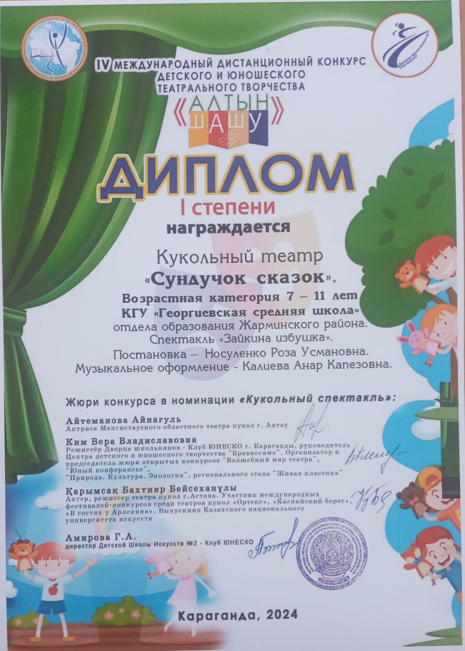 «Алтын Шашу» балалар мен жасөспірімдер театр шығармашылығы » «Георгиевка орта мектебі» КММ