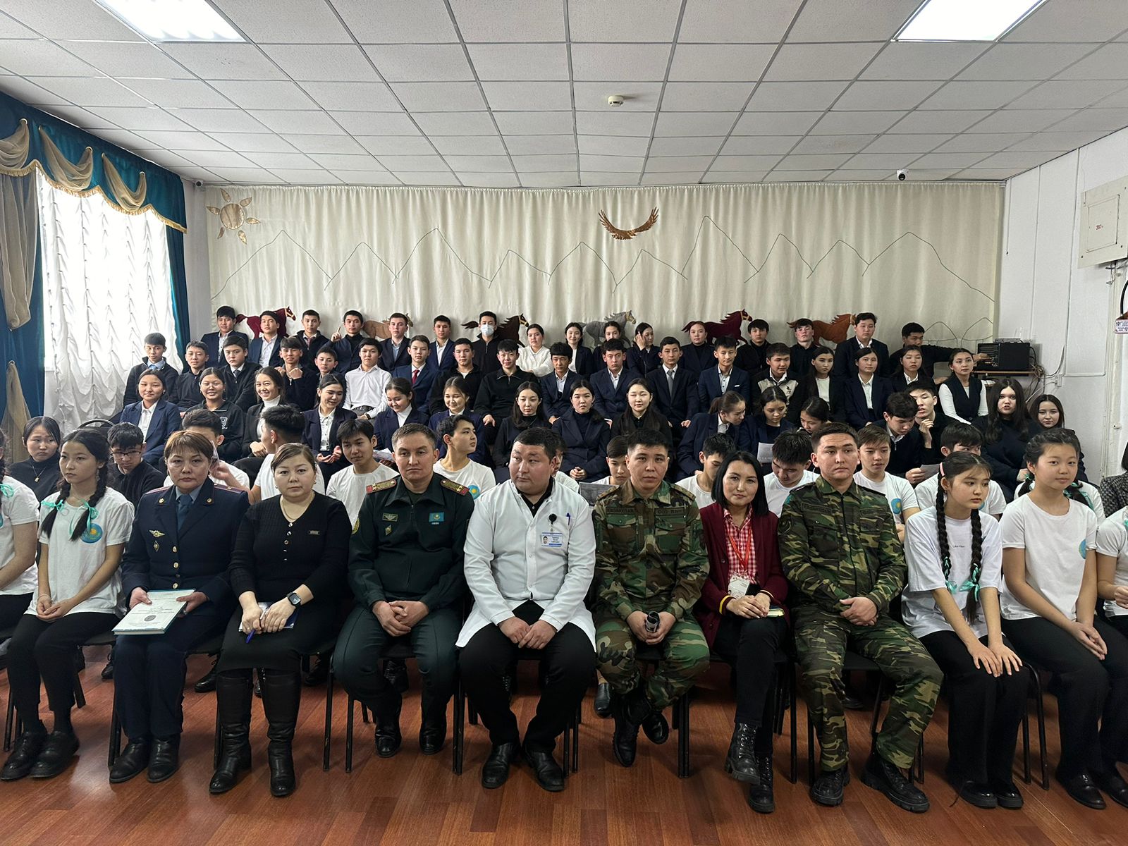 3. Жарма аудандық орталық ауруханасының жалпы медицина дәрігері – А.Ғ.Тұрғазы;4. Жарма аудандық полиция бөлімінің ЖПҚБ әйелдерге зорлық зомбылыққа қарсы инспекторы, полиция майоры - А.Е.Құнанбаева;5. Қалбатау ауылы №14 Өрт сөндіру бөлімінің қарауыл бастығы, азаматтық қорғау капитаны – А.А.Махметов, телефонист, кіші сержант - Р.А.Булатов;6. КазМикроФинанс мекемесінің жетекші маманы– А.С.Боранбаева;мамандары қонақ ретінде шақырылды. Аталған мамандар оқушылармен сұхбаттасып, көптеген сұрақтарға мамандық таңдауда ақпараттар берді. Кеш барысында қонақтар мектеп түлегі мен бүгінгі күннің талабына сай маманның моделін құрап, көрермендермен ой бөлісті. Ашық алаң соңы 10-сынып оқушыларының "Алға, Қазақстан!" атты флешмобымен аяқталды. #dosbollike #Абай_облысы_Жарма_ауданы #Біртұтас_тәрбие
