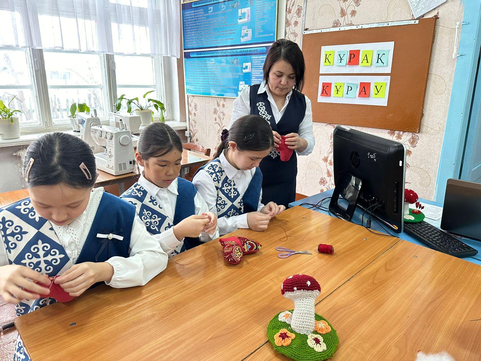 2024 жылдың 15 наурызда "Өнерлінің өзегі талмас" апталығы аясында көркем еңбек пәнінің мұғалімі Берикканова Мадина Каиргалиевна 5 "Г" сыныбында «Тоқыма мозайка техникасымен жасалған тігін бұйымдарынын дизайны. Жұмысты орындаудың реті» тақырыбында ашық сабақ өткізді. Сабақ барысында психологиялық ахуалды орнатуда «Құрақ құрау» сөздерінің әріптерінен қыздар бір-бірлеріне тілек тіледі. "Суреттер сөйлейді", "Ине қадағыш жасаудың нұсқаулық картасы" әдістері арқылы тапсырмаларды орындады. Кері байланысқа "Түрлі түсті түйреуіштер" әдісі қолданылып, сабақ қойылған мақсатына жетті.