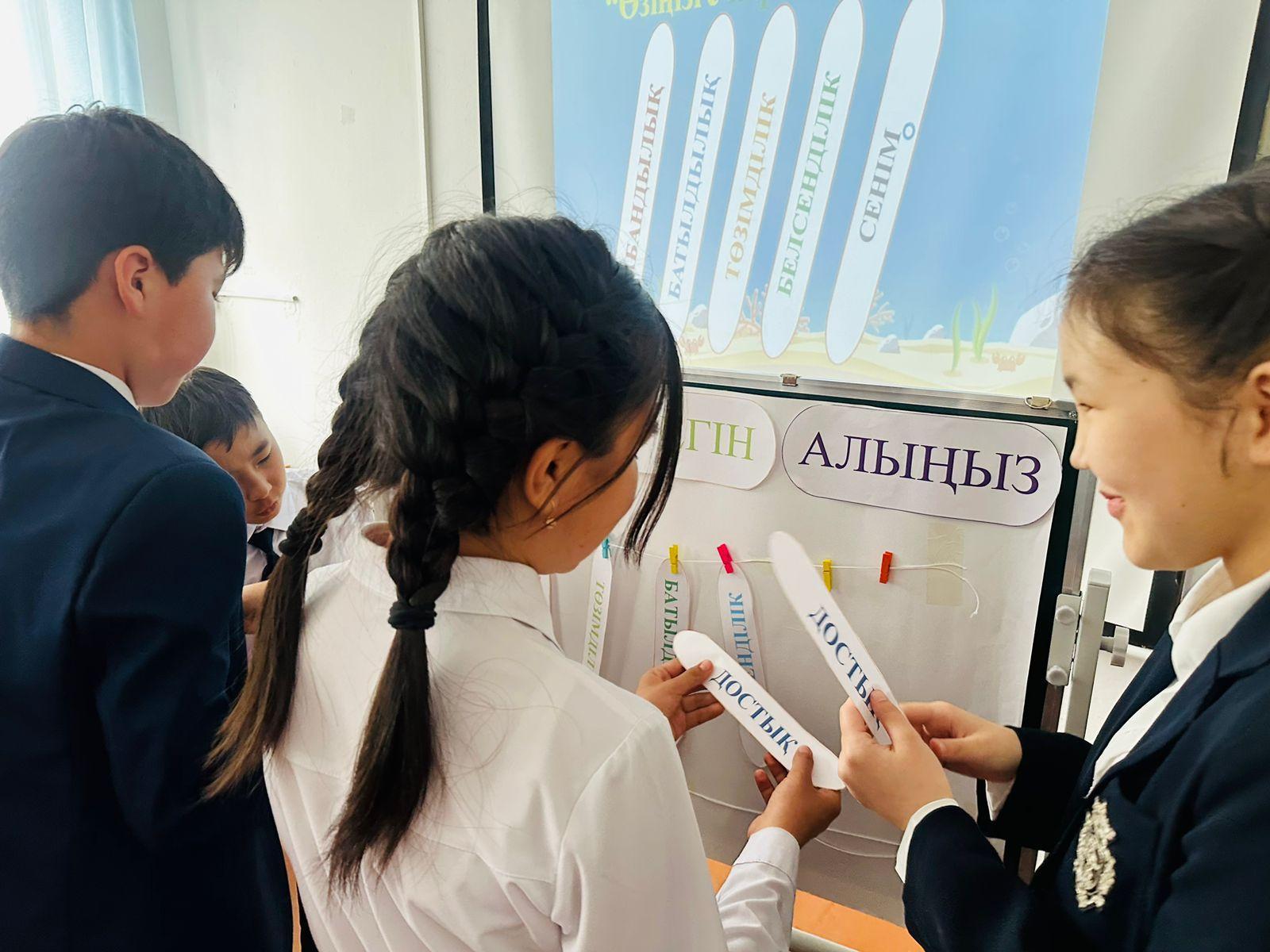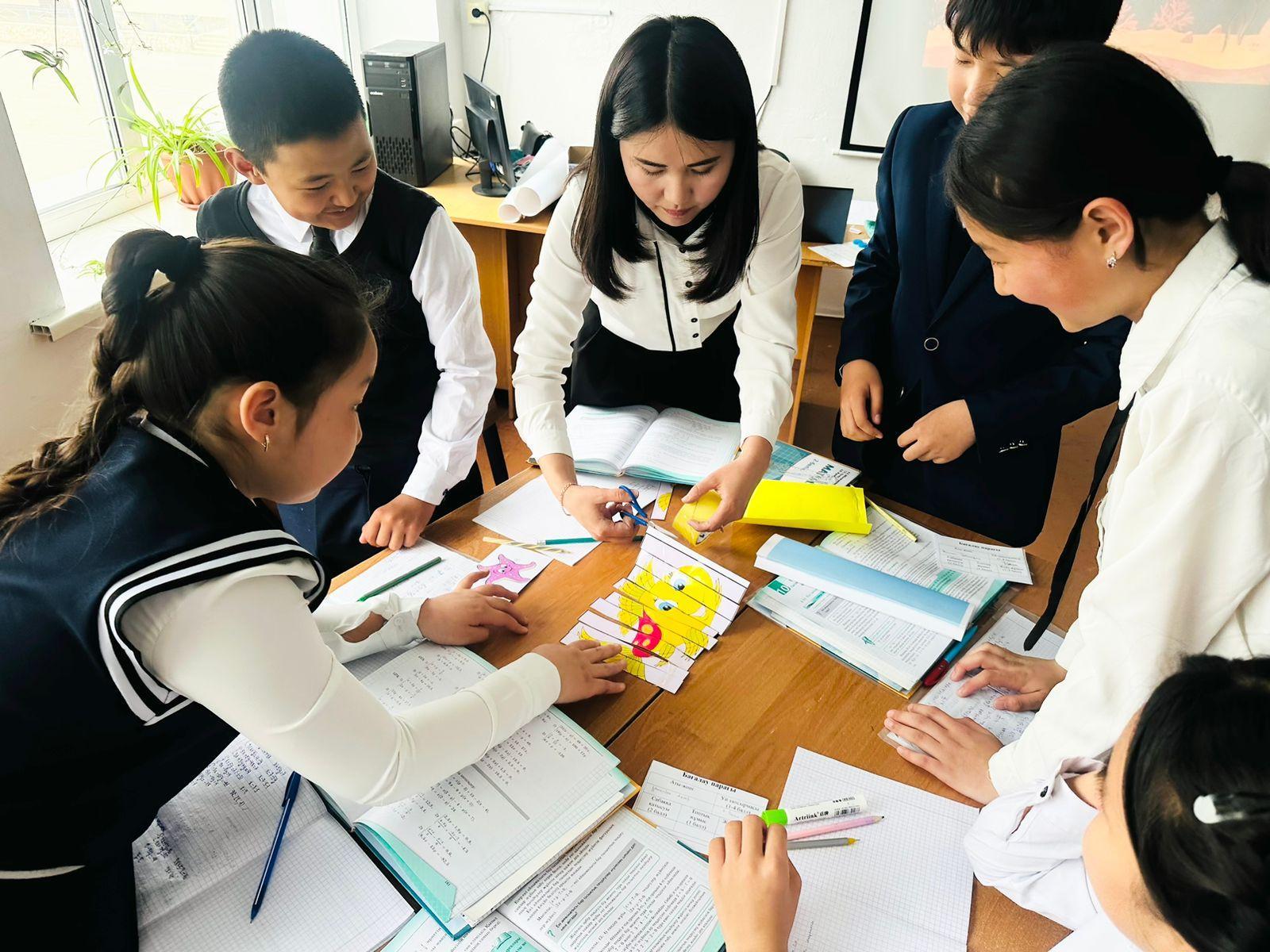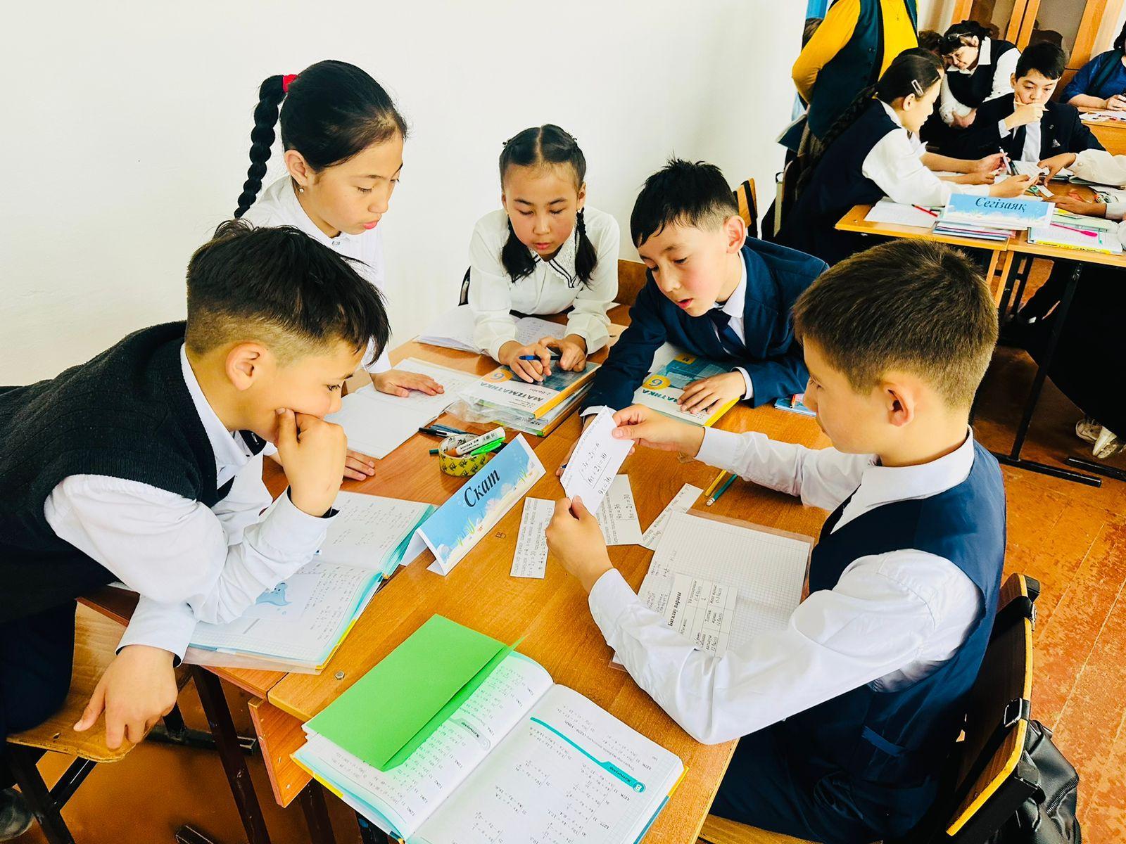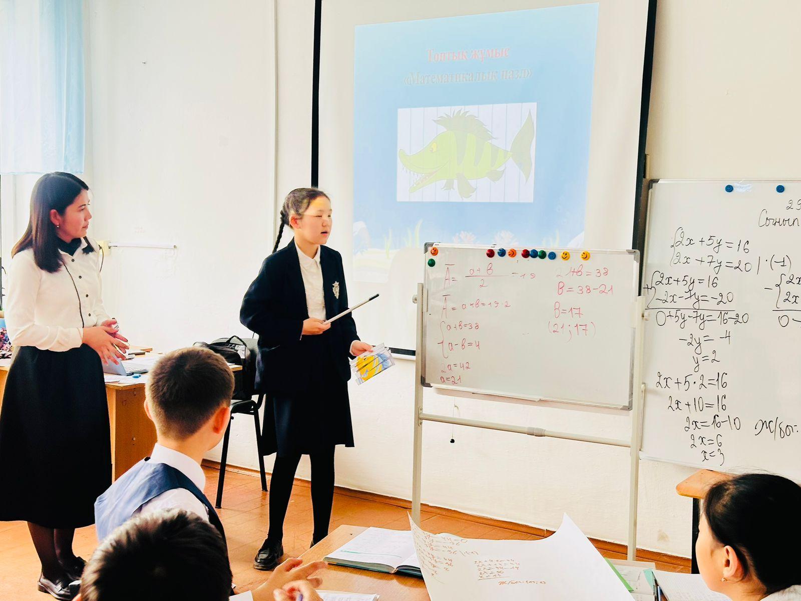 "Жас маман - болашаққа бас қадам" апталығы аясында математика пәні мұғалімі Әмірбек Салтанат Әмірбекқызы 6 "Б" сыныбында  «Екі айнымалысы бар сызықтық теңдеулер жүйесін қосу тәсілімен және алмастыру тәсілімен шешу» тақырыбында ашық сабақ өткізді. Сабақ мақсатына жету үшін мұғалім сабақ барысында «Аквариум» әдісін, «Қима қағаздармен жұмыс», «Математикалық пазл» әдісін қолданды. Сабаққа оқушылар белсене қатысты.