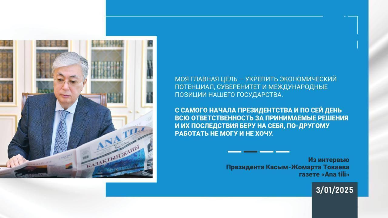 04 январь 2025 0 1 2 3 4 5 Касым-Жомарт Токаев: «Цель – укрепить экономику и суверенитет» Интервью Главы государства газете «Ana tili» Касым-Жомарт Токаев: «Цель – укрепить экономику и суверенитет»Интервью Главы государства газете «Ana tili»https://www.akorda.kz/.../kasym-zhomart-tokaev-cel...@oqu_agartu_ministrligi