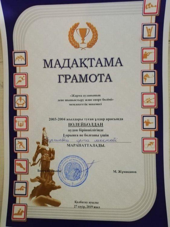 2019 жылдың сәуір айында Жарма ауданы мектептерінің 2003-2004 жылдары туған ұлдары арасында волейболдан өткен аудан біріншілігінде «Георгиевка орта мектебі»КММ –нің командасы жүлделі бірінші орынды иеленді. Команда мүшелері мақтау қағаздарымен марапатталды.