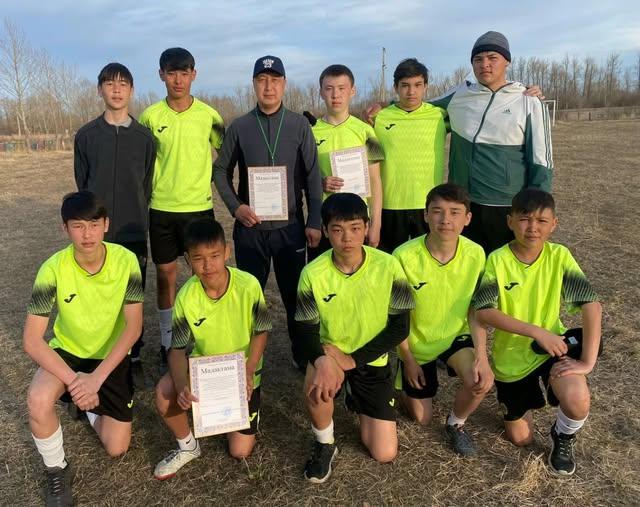 На районном этапе республиканской национальной школьной лиги в соревнованиях по футболу учащиеся 7-8 классов нашей школы заняла призовое I место и получили путевки на областной этап.