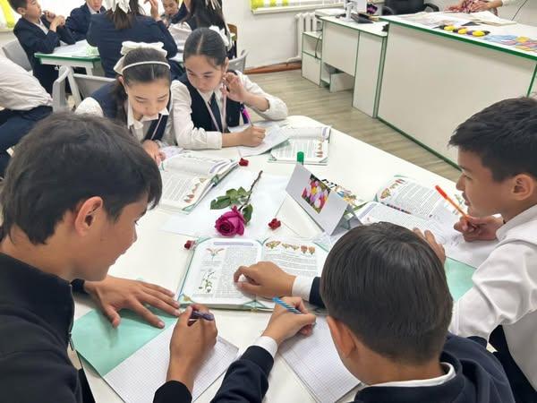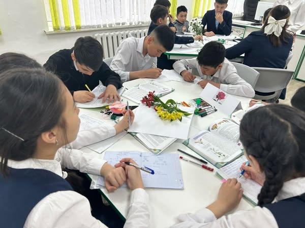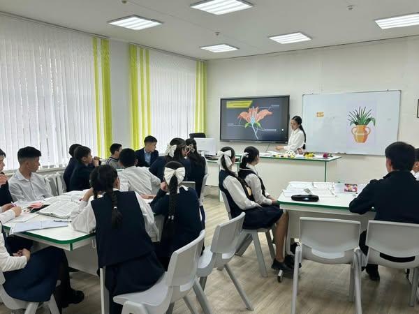 🗓️В соответствии с планом недели молодых специалистов «Молодой учитель – начало светлого будущего» учитель биологии Тұрсынханова Рашида Жеңісқызы в 7 "В" классе провела урок на тему "Цветочное строительство. Виды опыления. Цветение и опыление». Цель: Описать сравнительные преимущества самоопыления и перекрестного опыления.