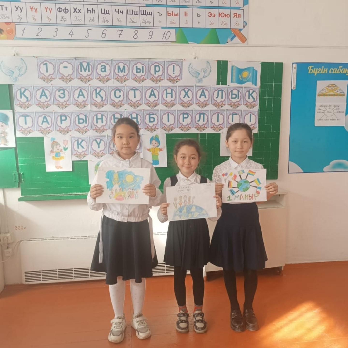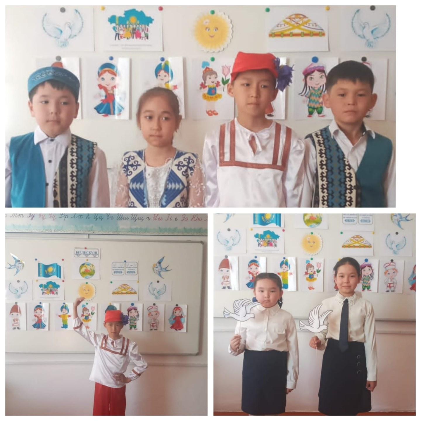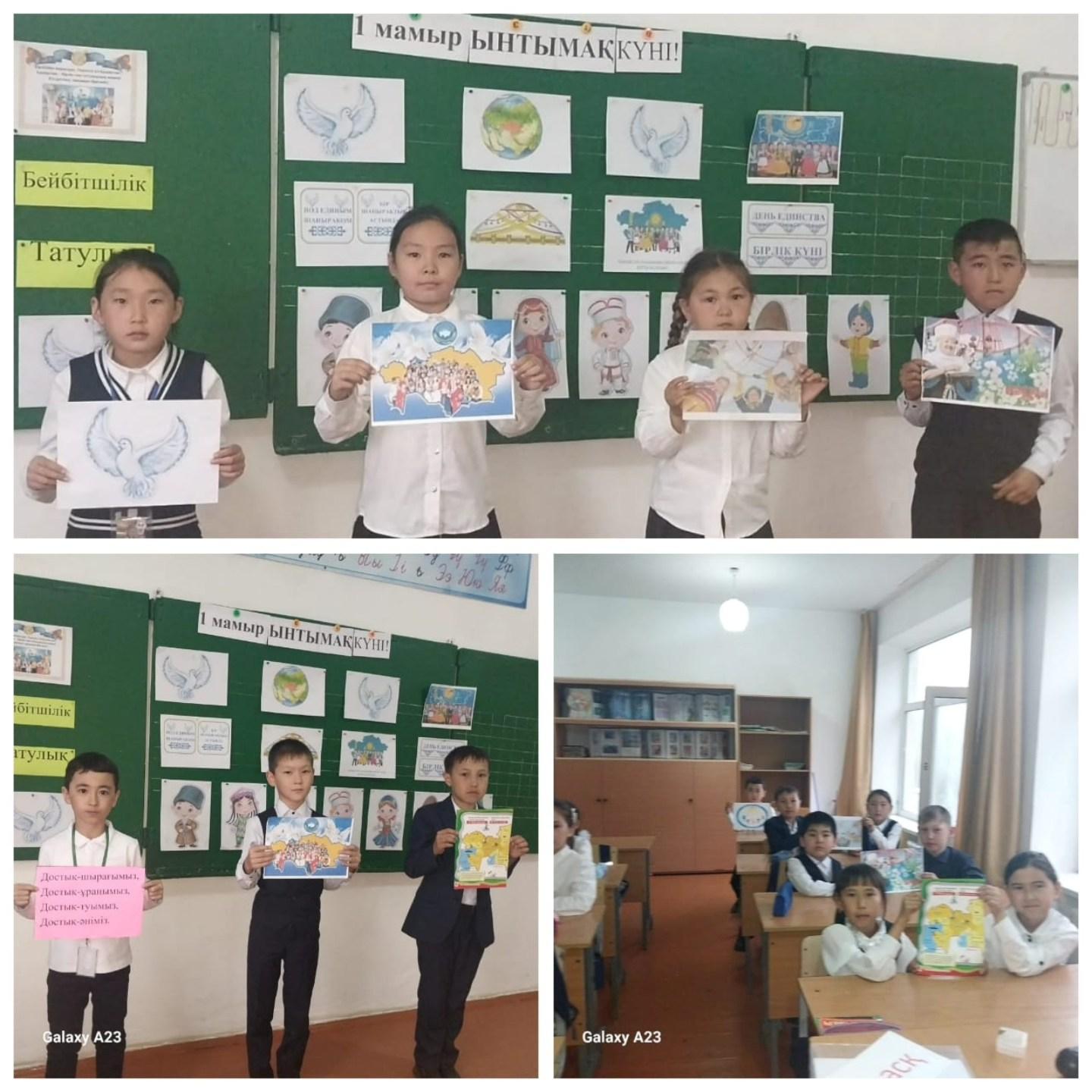 "1 мамыр- Қазақстан халқының бірлігі күні" мерекесіне орай құрылған іс- шаралар жоспарына сәйкес "Достығымыз жарасқан" атты сынып сағаттары өтті.В соответствии с планом мероприятий, созданным в честь праздника" 1 мая - День единства народа Казахстана", были проведены классные часы на тему " Достығымыз жарасқан".