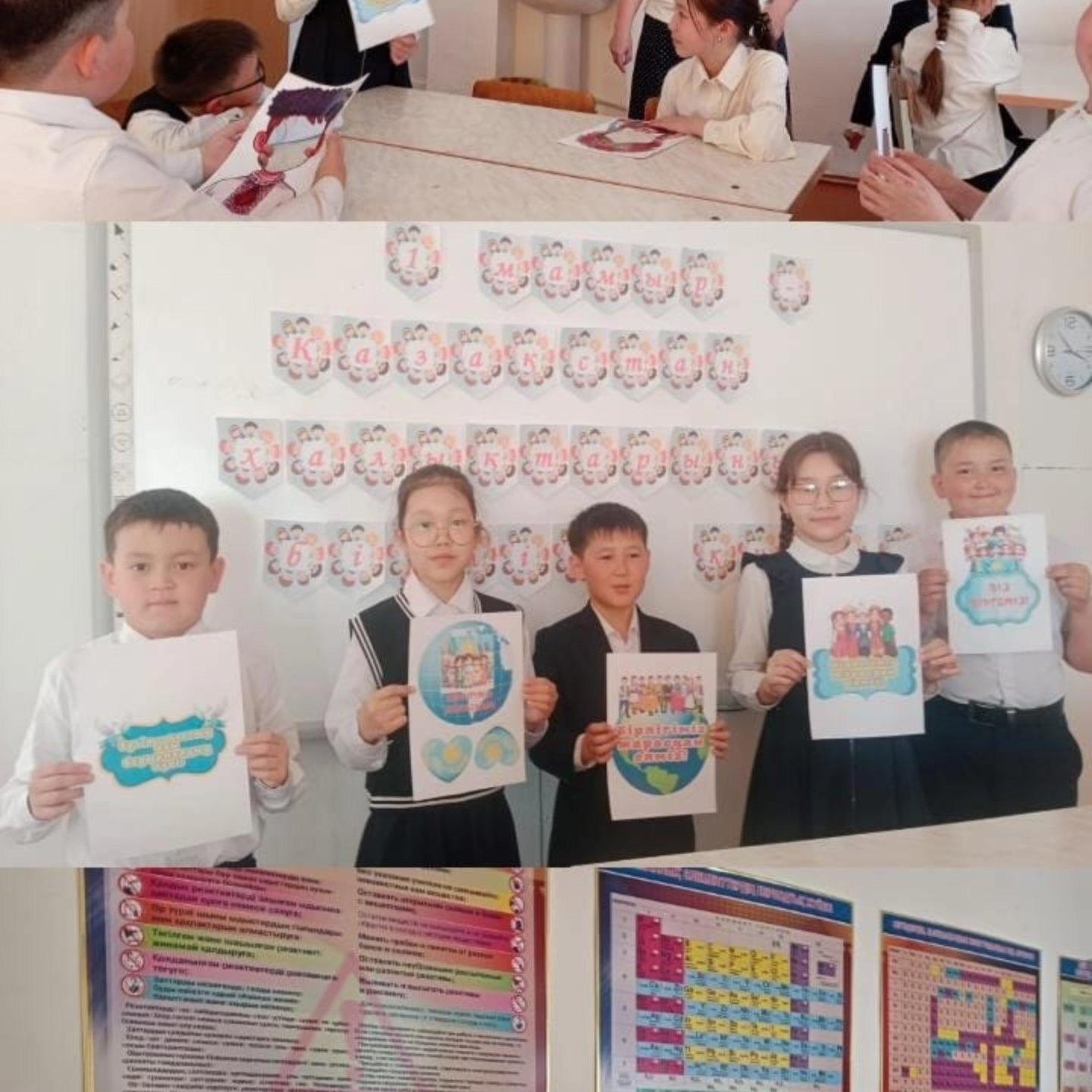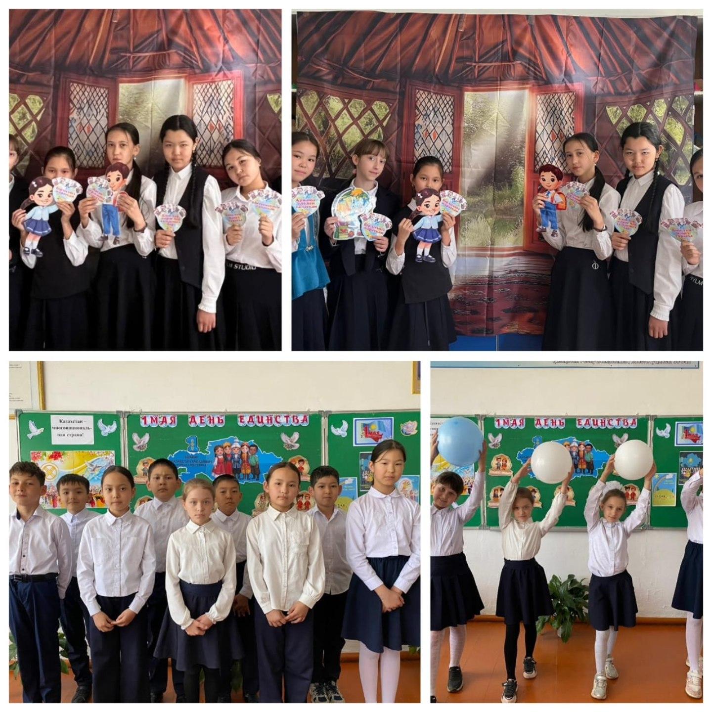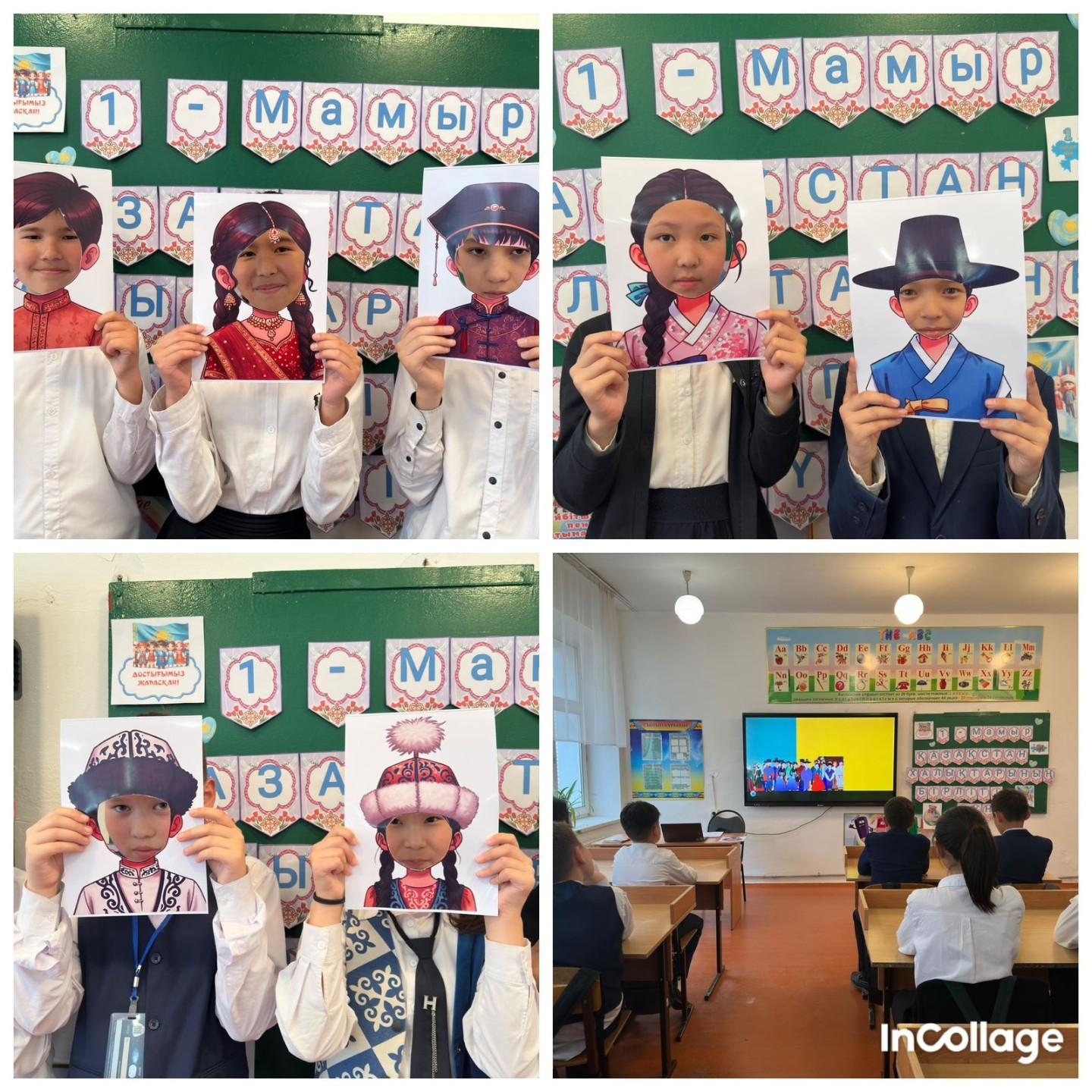 "1 мамыр- Қазақстан халқының бірлігі күні" мерекесіне орай құрылған іс- шаралар жоспарына сәйкес "Достығымыз жарасқан" атты сынып сағаттары өтті.В соответствии с планом мероприятий, созданным в честь праздника" 1 мая - День единства народа Казахстана", были проведены классные часы на тему " Достығымыз жарасқан".